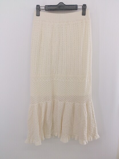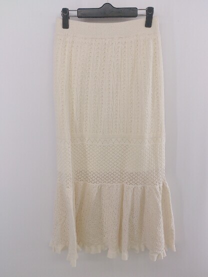 ◇ ◎ ●美品● NICE CLAUP タグ付 デザインニット ロング マーメイド スカート サイズF ライトベージュ系 レディース E