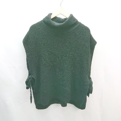 ◇ GLOBAL WORK ハイネック ケーブル 起毛 リボン スリット ノースリーブ ニット サイズF ブラック系 レディース E
