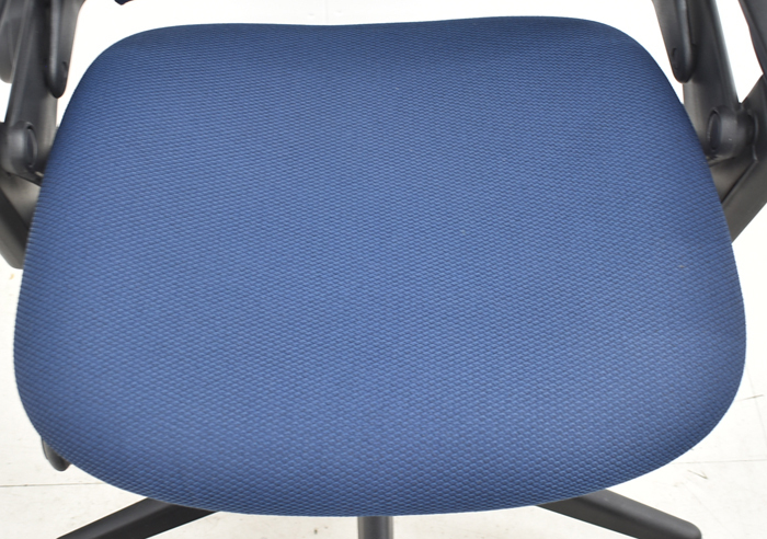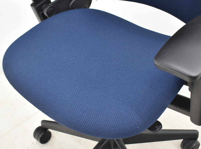 チェアの背がフリーにリクライニング(傾斜)します。また、右側のレバー操作により、体重、好みに応じて背のリクライニング(傾斜)強度調節ができます。ナチュラルグライドシステムを搭載したダイナミックな座面はリクライニングする際に骨盤を前に滑らせる機能です。この自然な動きがリクライニング時に脊椎にかかる負荷を軽減させます。また座面のフレックスシートエッジは前傾姿勢の際に座面の前方エッジが曲がり、大腿部への圧迫を和らげています。