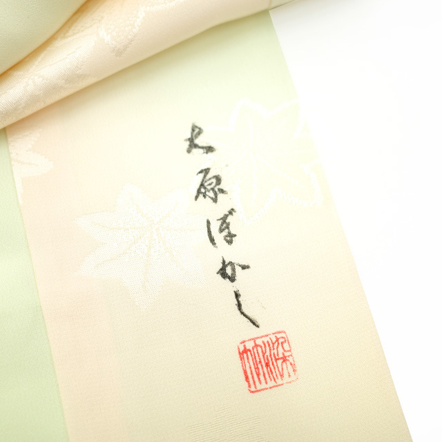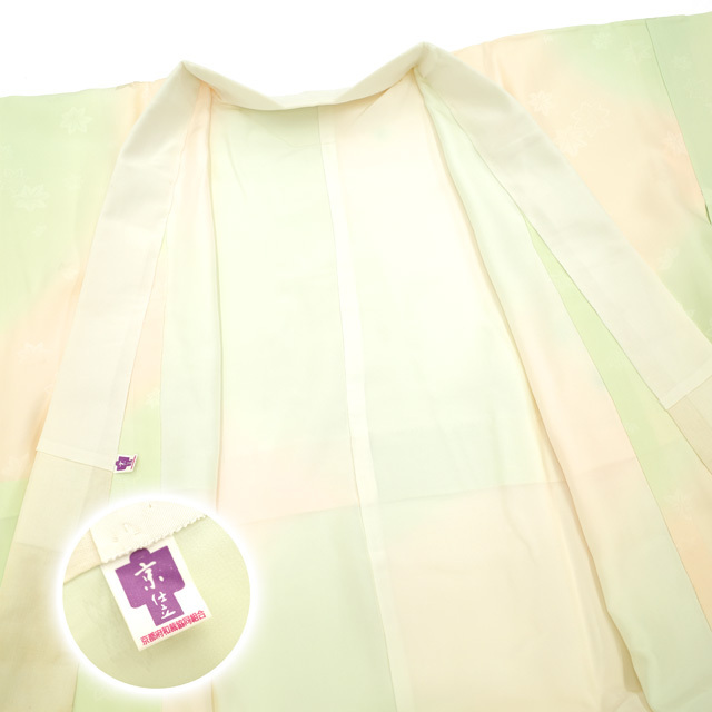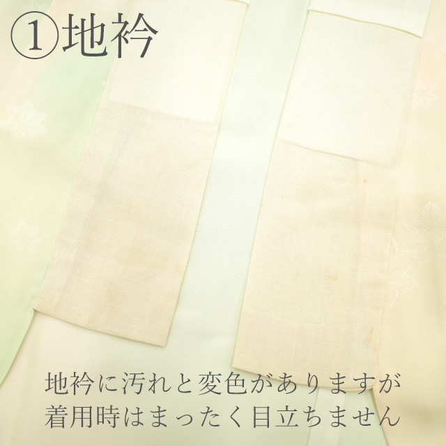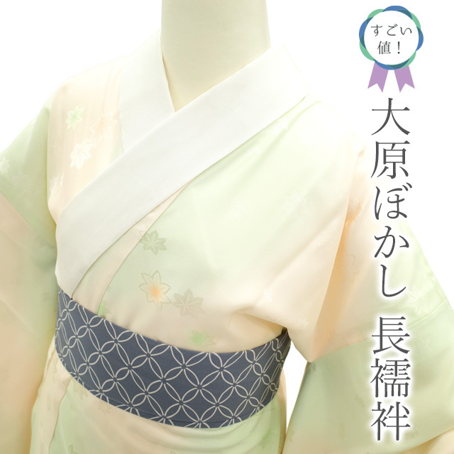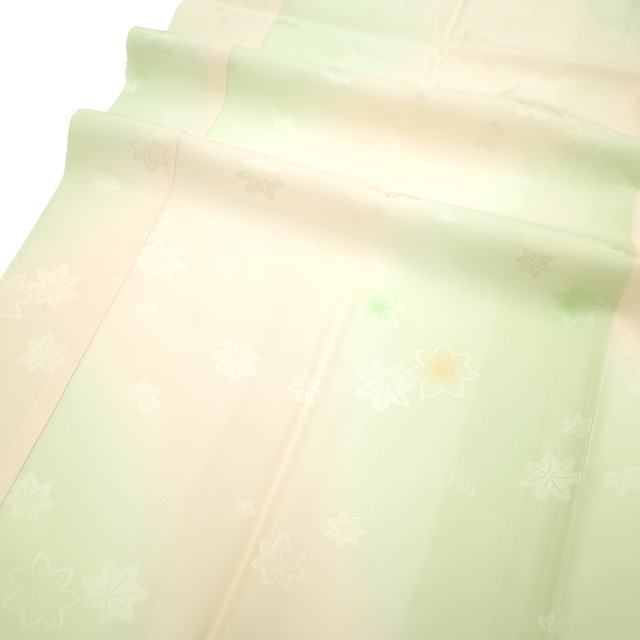 【中古】 すごい値! 長襦袢 リサイクル 袖無双 袷仕立て 正絹 大原ぼかし 薄ピンク 薄緑 楓 半衿付き フォーマル カジュアル 仕立て上がり 身丈134 裄丈66.5 Mサイズ 春 秋 冬 リサイクル長襦袢 たとう紙付き 送料無料 長じゅばん フォーマルからカジュアルまで幅広く 販売 購入 リユース すごいね みやがわ nek01121