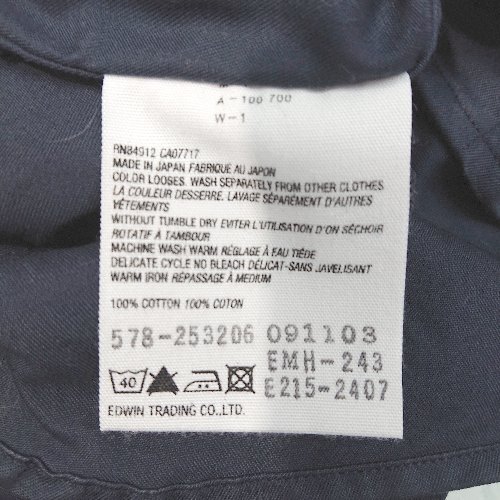 ◇ EDWIN エドウィン フロントボタン ポケット 無地 コットン 長袖 シャツ サイズ1 ネイビー メンズ レディース E 1