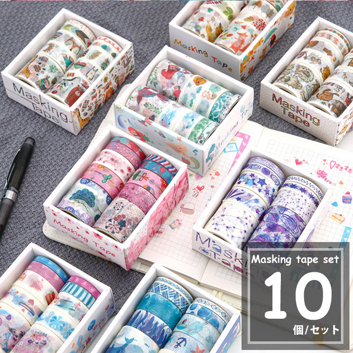10個セット プリント 柄 マスキングテープ スクラップブッキング マステ 0001-9