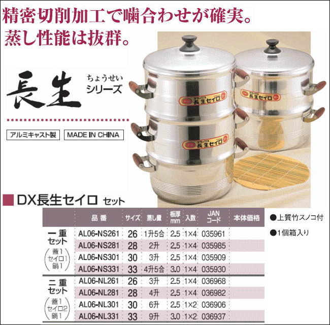 | ホクア DX 長生セイロ 二重セット 28cm 上質竹スノコ付 《 二重 28センチ》 | |||||||||||||||