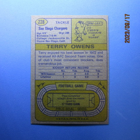 1974 Topps Football #228 Terry Owens