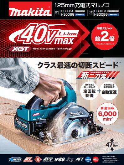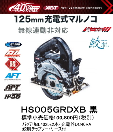 マキタ 125mm充電式マルノコ HS005GRDXB 黒 【40V-2.5Ah】