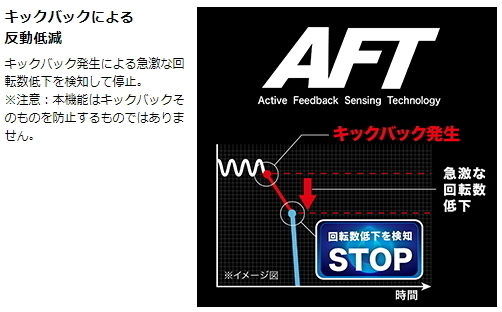 ■キックバック反動低減 キックバック時の回転数低下を検知して「自動停止」。