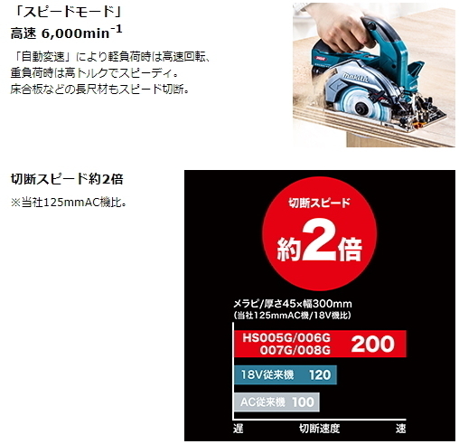 ■クラス最速の切断スピード 定回転制御+自動変速