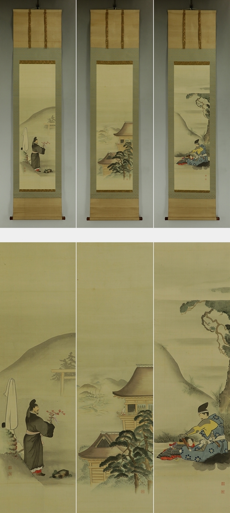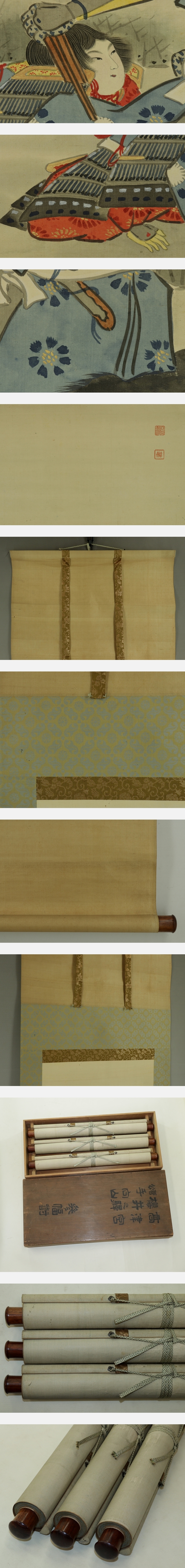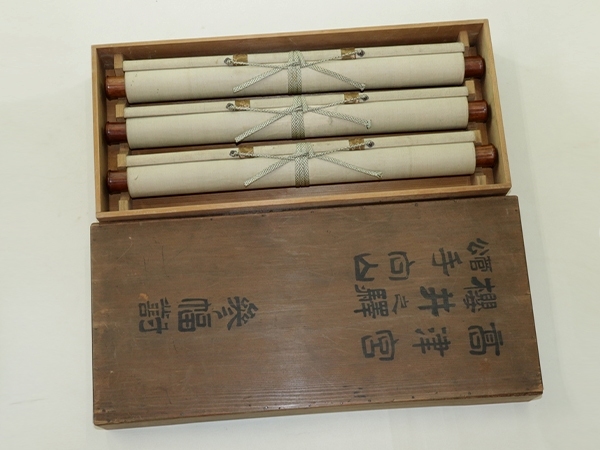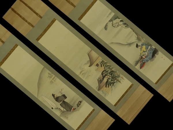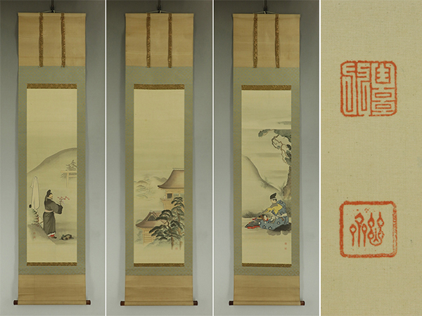 | №2301012【真作】玉手菊洲【三対幅・高津宮】◆絹本◆合箱◆掛軸 | |