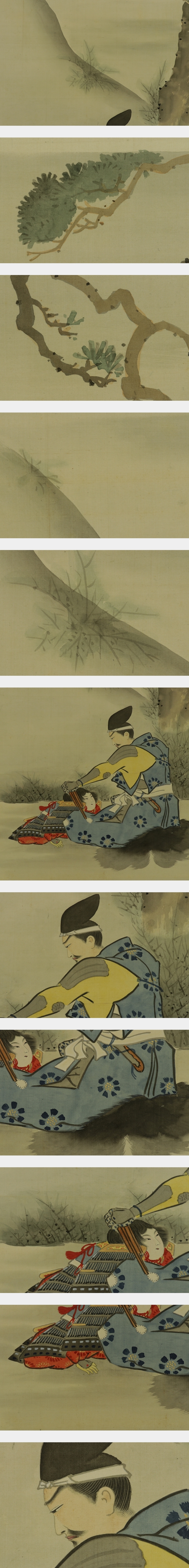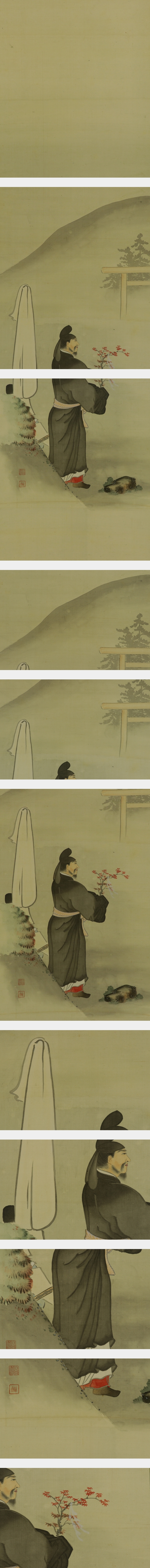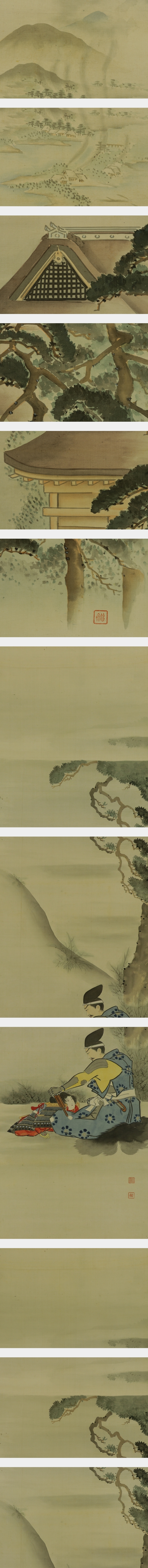玉手菊洲 日本画家。大阪生。通称は二郎。棠洲の二男。父に学ぶ。明治年間の人。 本紙は、染み、折れ、皺があります。 表装は、染み、汚れ、皺、ほつれがあります。 【サイズ】 作品 横約32.5cm×縦約114cm 表装 横約44cm×縦約190cm |