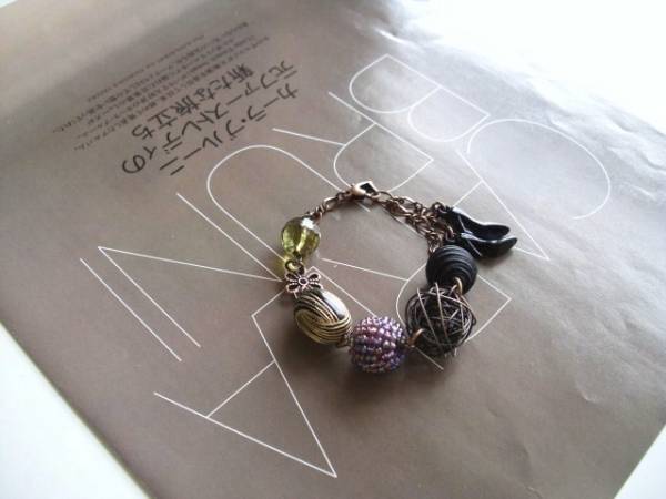 セシル・スタイル・・シリーズです♪アンニュイな色を集めて・・黒やモス・グリーンやダークパープルなどアンニュイな色の素材を集めたブレスレットです ♪12ミリから18ミリ位までのサテンビーズや麻ビー ズ、樹脂ビーズやビンテージビーズやワイヤーボールなど個性的な異素材を合わせました♪カジュアルから フォーマルまで色々なシーンで楽しんでいただけます♪長さは全長23センチ位で調節自由です♪お揃いのネックレスも出品しています♪♪シンプルで長く着 けていただけるデザインを考えて作りました♪ハンドメイドをご理解頂いてノークレーム、ノーリターンでお願いします
