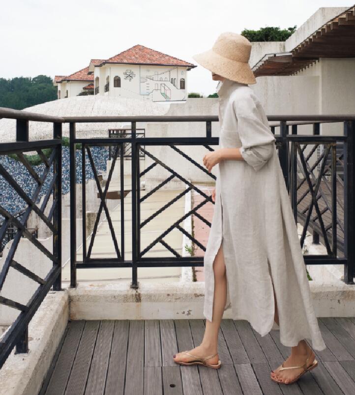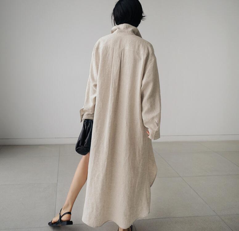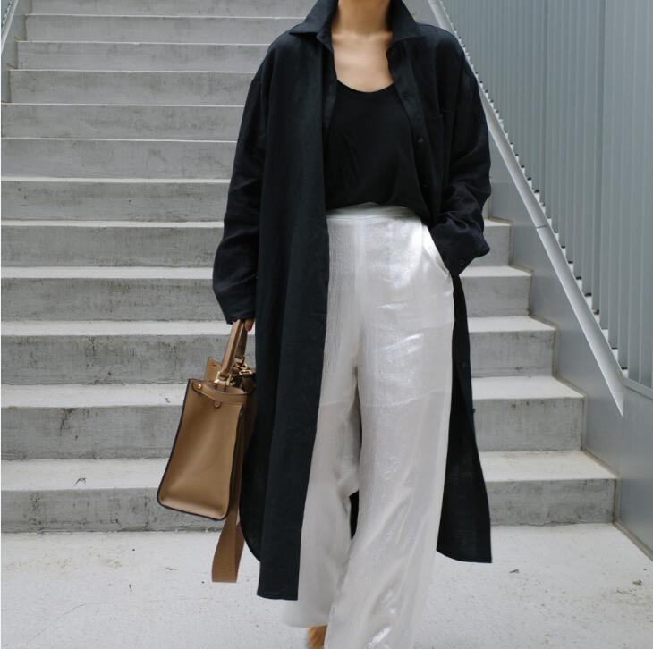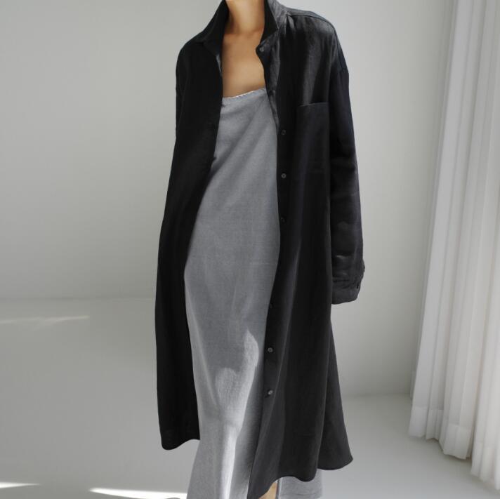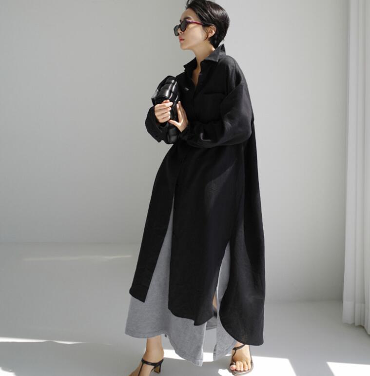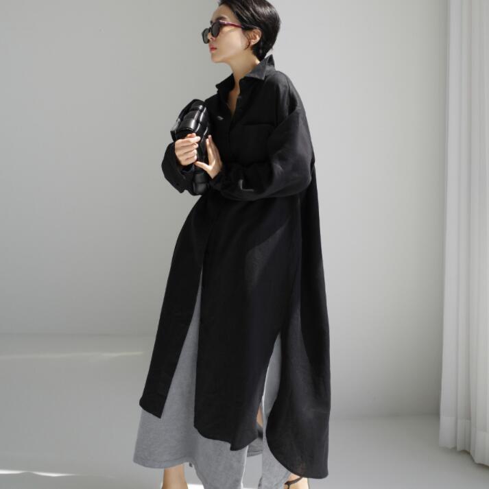 「同梱1万円送料無料」 秋新作*レディース*カジュアル*ゆったり大きいサイズ*体型カバー*無地*ロング丈シャツワンピース*S~XL*黒