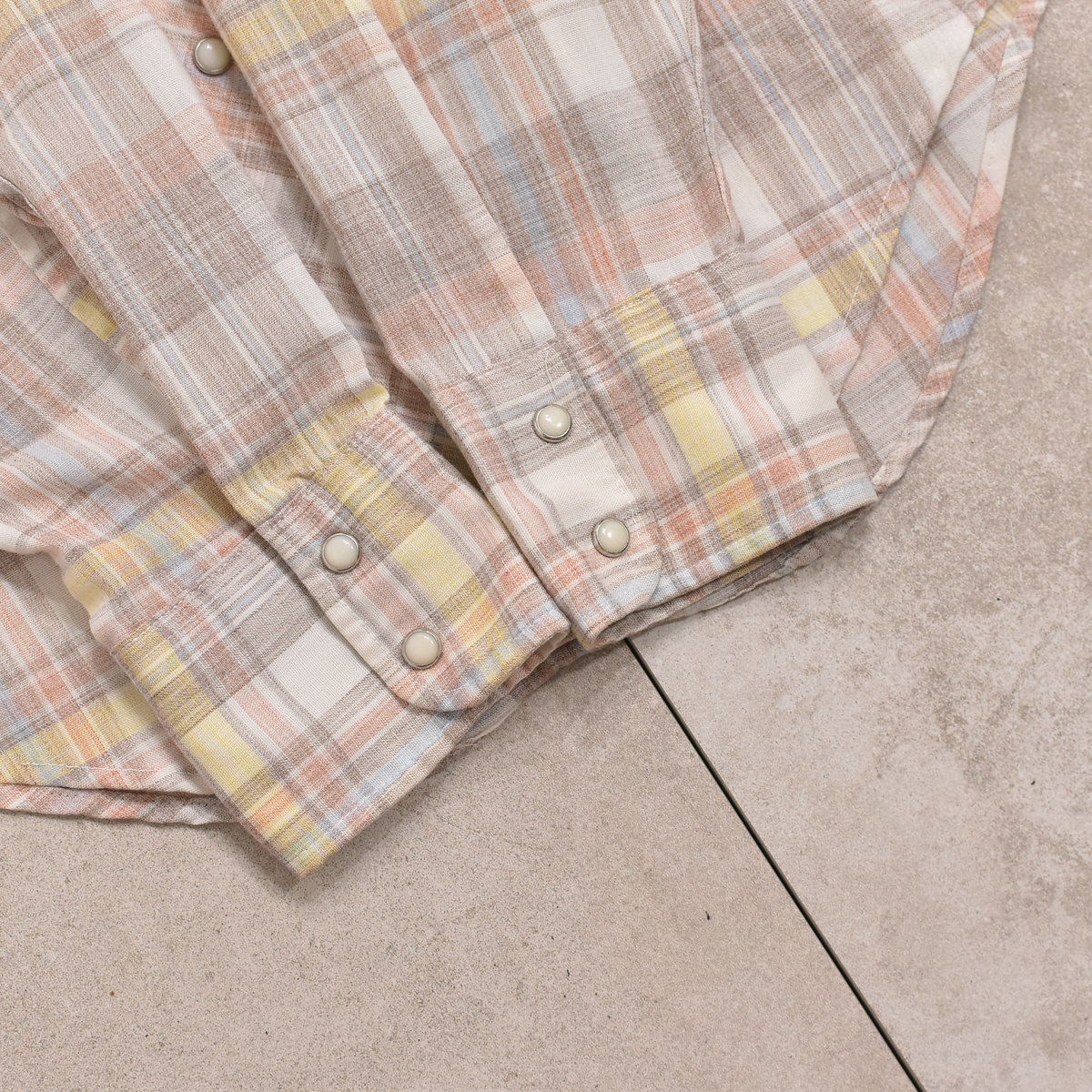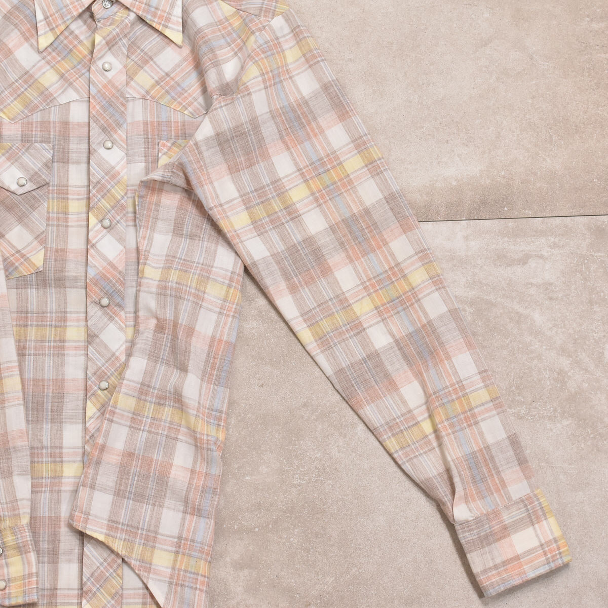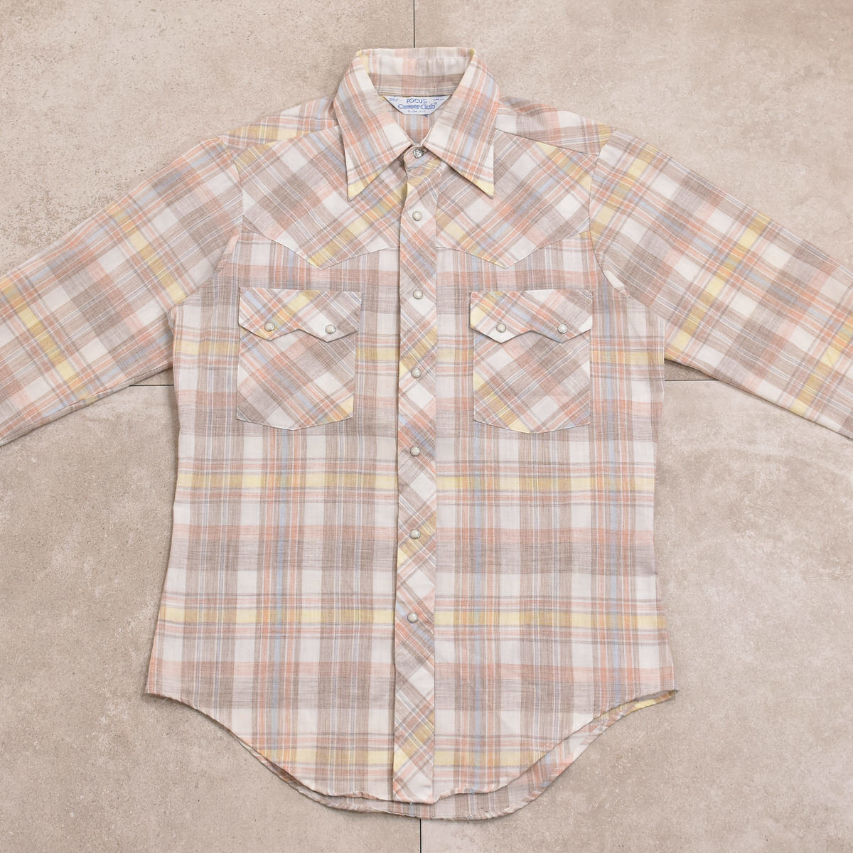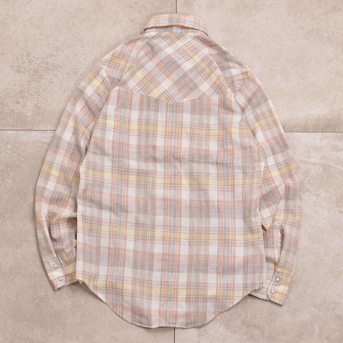 シャドーチェックや、オンブレチェックにも似た、掠れたようなチェックパターンを使った70年代頃のヴィンテージのウエスタンシャツ
