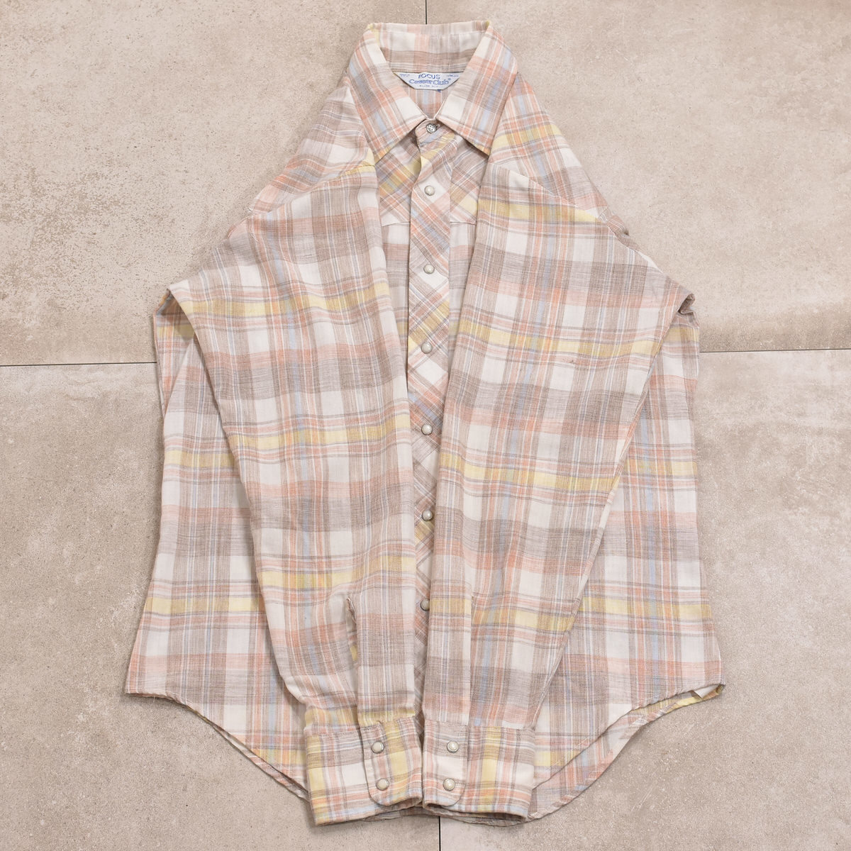 70s アメリカ製 FOCUS Career Club シャドーチェック ウエスタンシャツ 長袖 ヴィンテージ ビンテージ USA製 メンズ Mサイズ