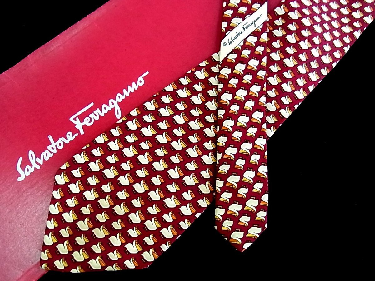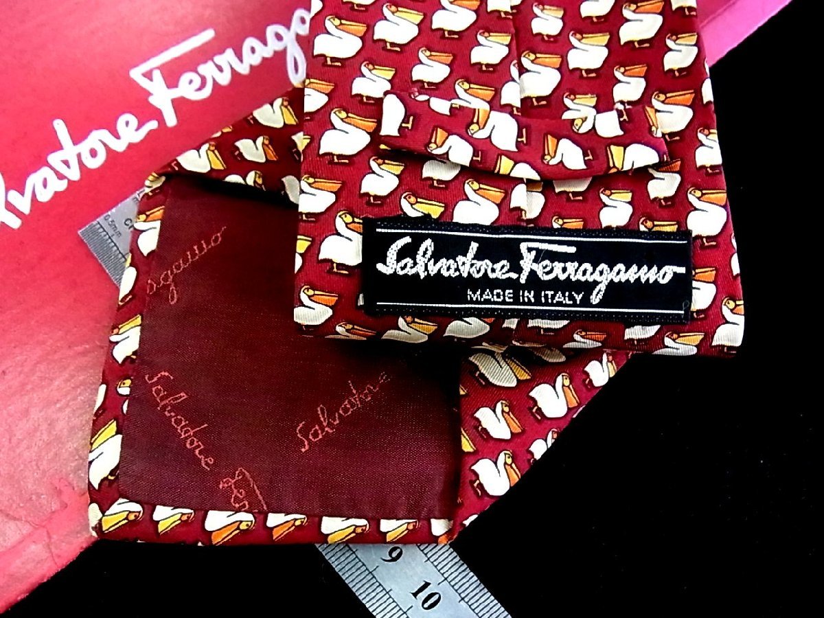 ★今週の特売★3839★高級ブランド【キャラ柄】★フェラガモ【ペリカン 鳥 柄】ネクタイ★