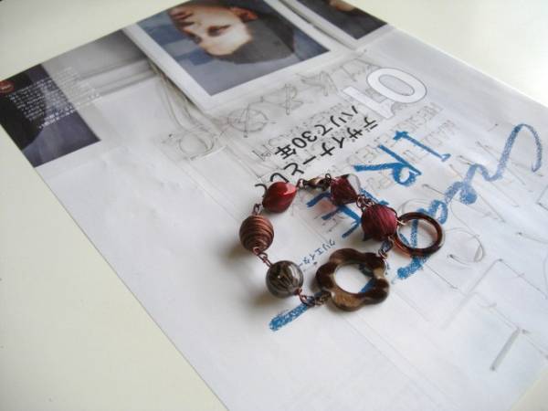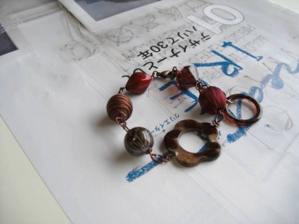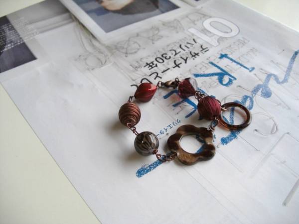 セシル・スタイル・・シリーズです♪フレンチ・シック・・個性的な異素材を集めたブレスレットです♪10ミリから28ミリ位までのデザインビーズやサテン ビー ズ、チェコビーズやベネチアビーズ、サテンビーズやシェルフラワー、メタルビーズをデザインチェーンで繋ぎました♪シックな色で まとめて大人の ロマンチックしています♪長さは全長23センチ位で調節自由です♪お揃いのネックレスも出品しています♪ハンドメイドをご理 解いただいてノークレー ム・ノーリターンでお願いします♪
