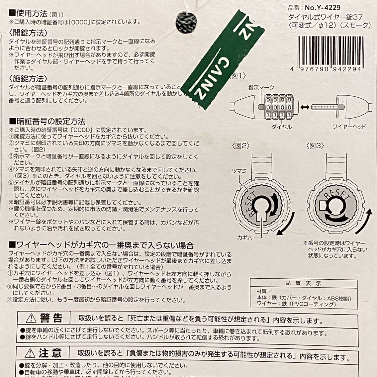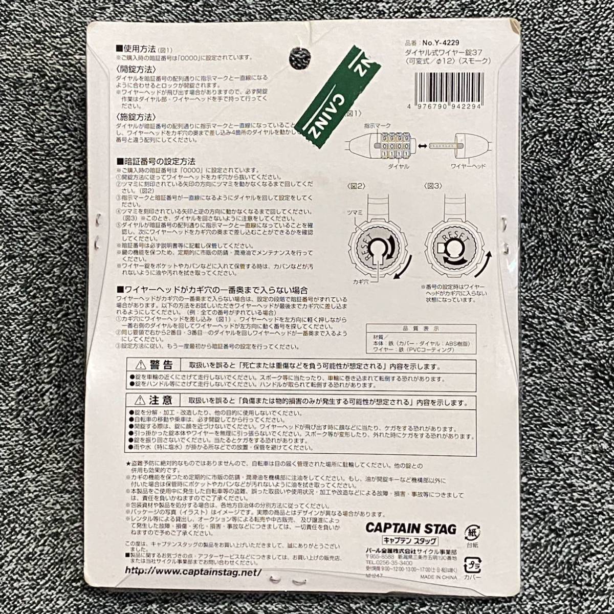 キャプテンスタッグ CAPTAIN STAG ダイヤル式ワイヤー錠(可変式) スモーク Y-4229 新品になります。