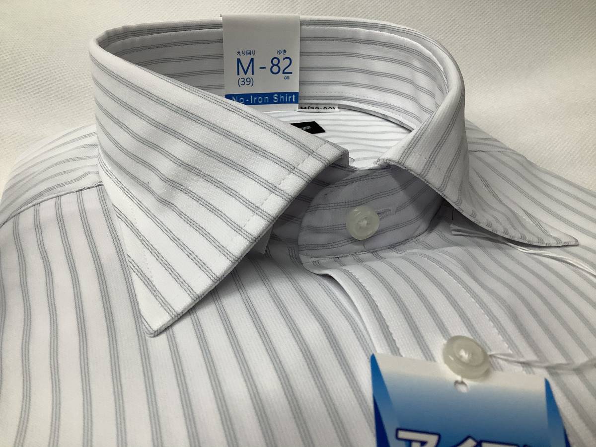 新品39-82 Mサイズ 洗濯簡単アイロンゼロシャツ ワイドストライプ ニット素材のクールビズ対応のカッターシャツ お買い得サービス