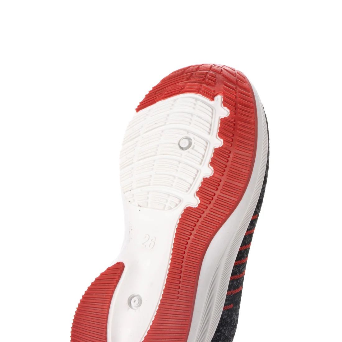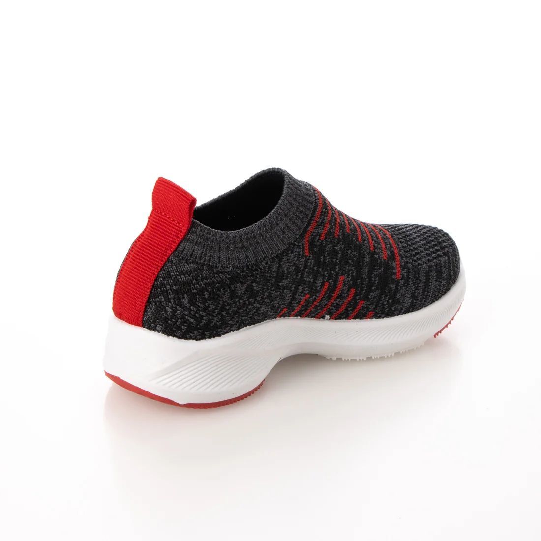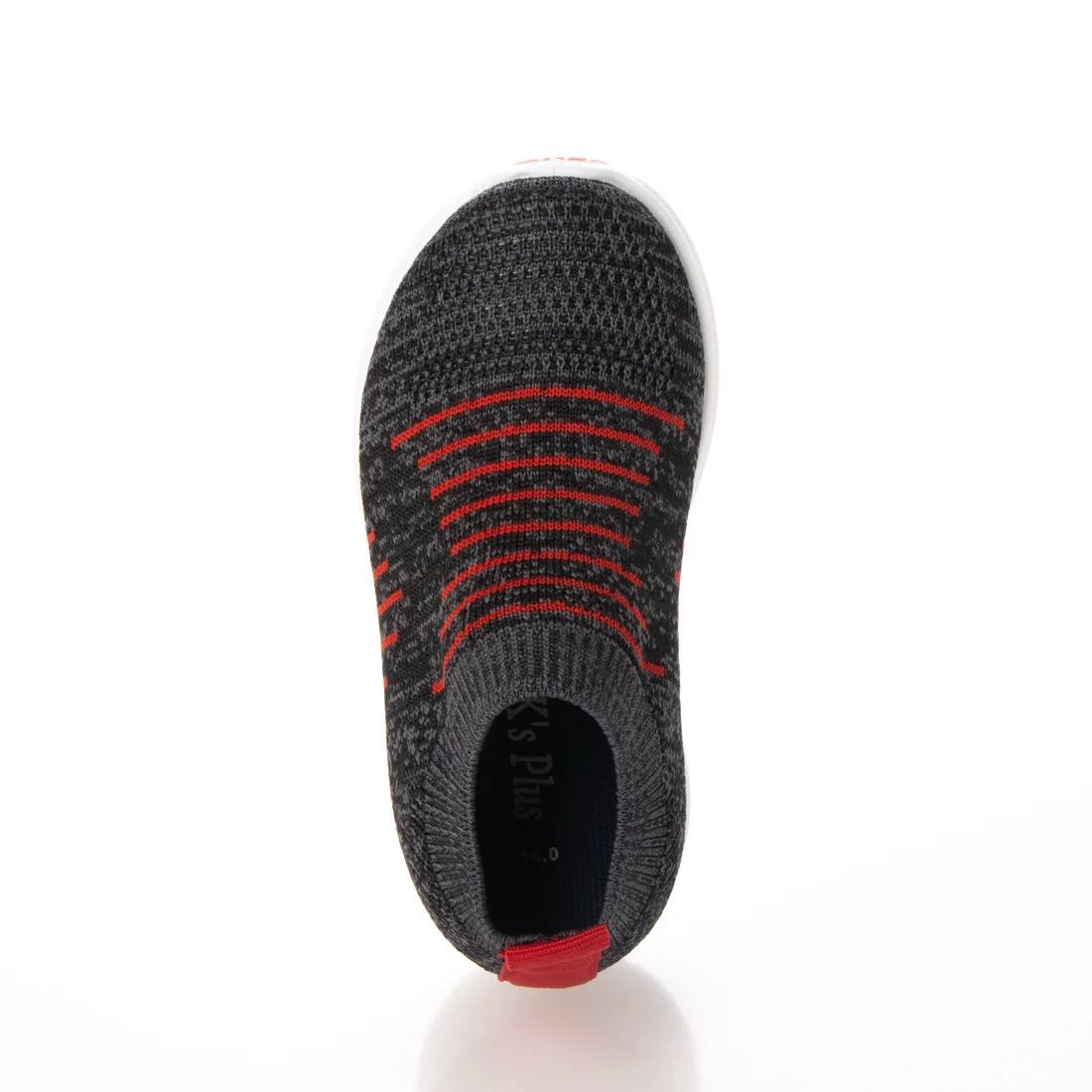 こちらのフライニットスニーカーは、靴下を履かすような感じですっぽり。 足首に力を入れてくれれば履かせやすのですが子供の足はクネクネしますよね。 ちょっと伸びちゃいますが履き口を大きく広げて履かす事が可能です。 幅広の為、べたっと平べったい足のお子さんや扁平足のお子さんでもおそらく楽です。 すごく軽量でふかふかの6mm厚インソールもおすすめポイントです! 個人的な意見ですが激しい運動には向いていない感じです。 遊びや普段履きについては問題ないと思います。 ストライプ柄に比べこちらはスポーティな感じでスリムに見えます。 サイズ感は、普段サイズで問題ないと思いますが半サイズがないので 大きめになるかもわかりませんが半サイズ上をお選び下さい。 (子供の足は、すぐに大きくなりますから・・・。) スペック カラー:ブラック&レッド サイズ:16.0cm 甲材 : 合成繊維 靴底 : 合成底 中敷き:合成繊維(6mm厚ふかふかインソール) |