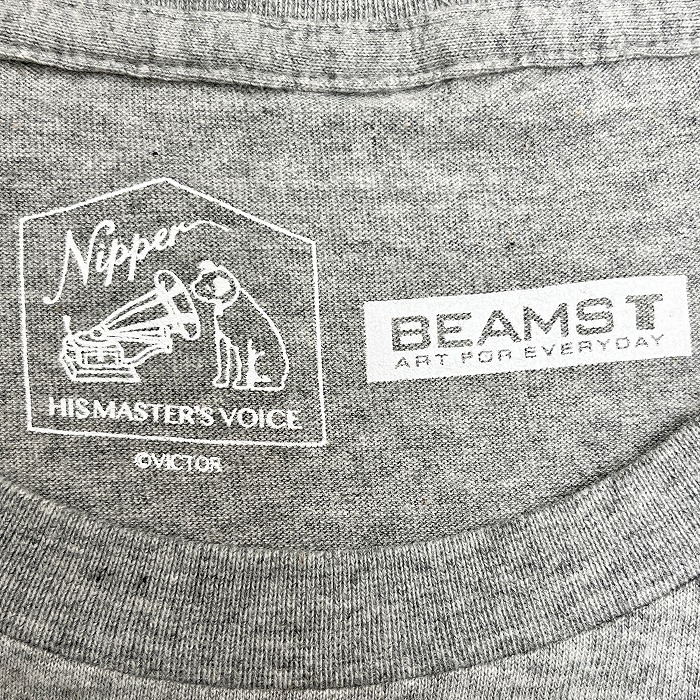 商品タイトル | ビームスT|ビクター BEAMS T|VICTOR Tシャツ 半袖 プリント 犬 蓄音機 HIS MASTER'S VOICE 英字 綿100% L 杢グレー 杢グレー×白 メンズ |