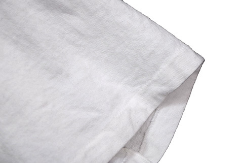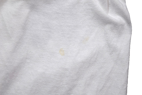 首リブにピンホール・背中面右後ろ横にシミが少しあります。