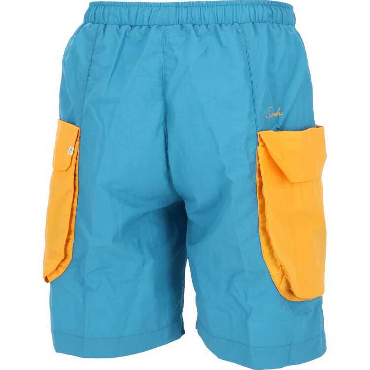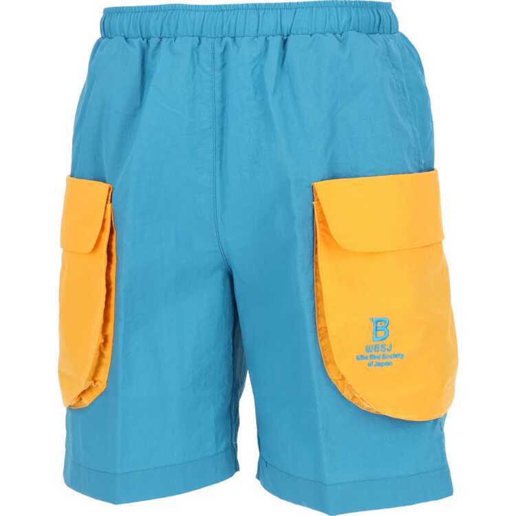 カワセミ、キビタキのカラーリングが特徴のポケッタブルショートパンツです。双眼鏡も入るポケットも装備しています。