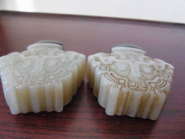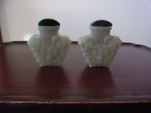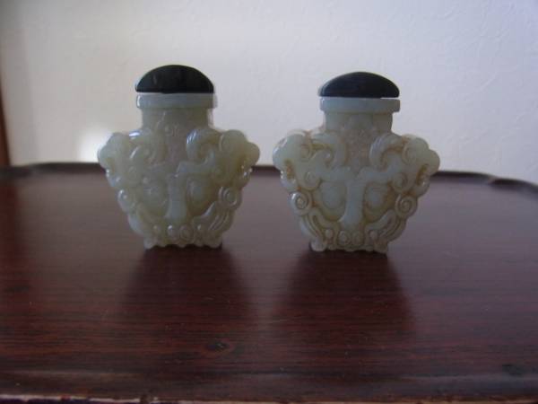 ■□■細工彫り和田青玉鼻煙壷一対■□■