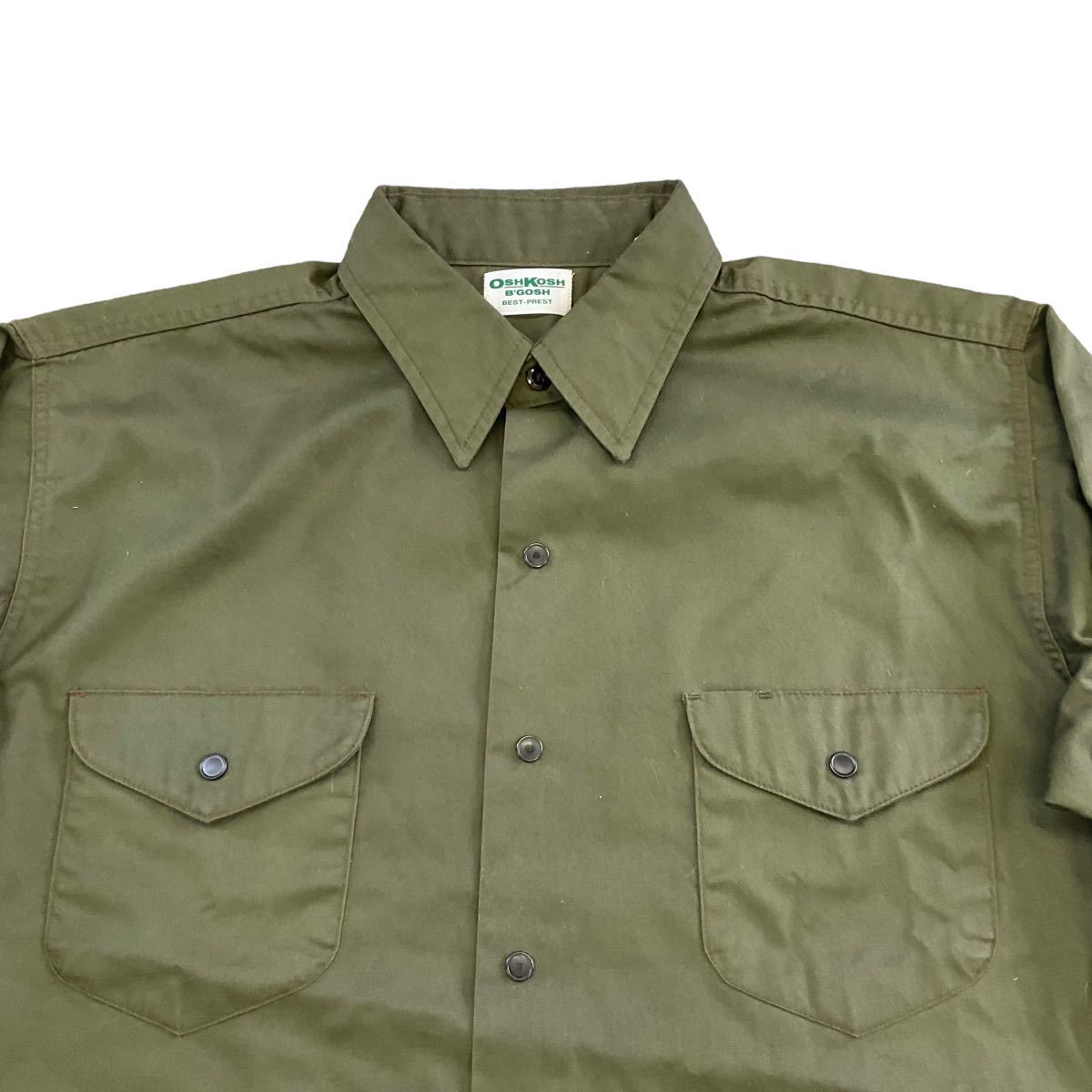 80s USA製 OSHKOSH B’GOSH ワークシャツ 長袖 シャツ オリーブ 16 1/2 オシュコシュ