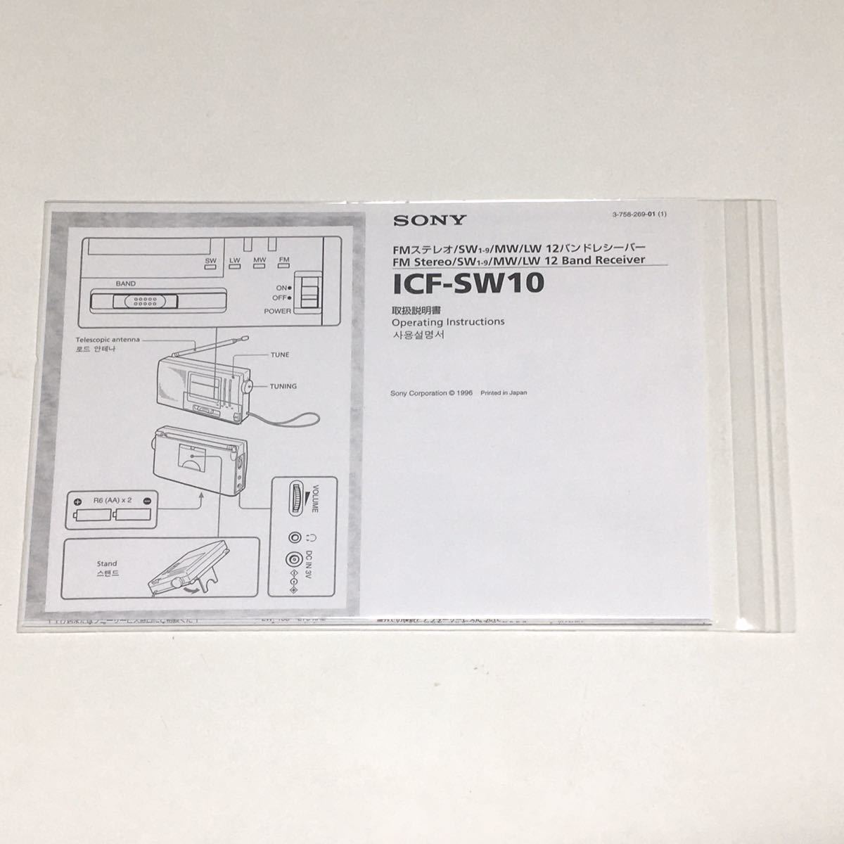 【取扱説明書資料のみ】ソニー SONY◆FMステレオ/SW1-9/MW/LW◆12バンドレシーバー◆ICF-SW10