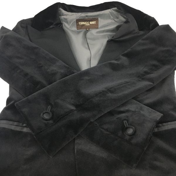TORNAD MART/トルネードマート 光沢ツヤ有り/テーラードジャケット【38(レディースM 黒/ブラック】ベロア 管NO.A11-24