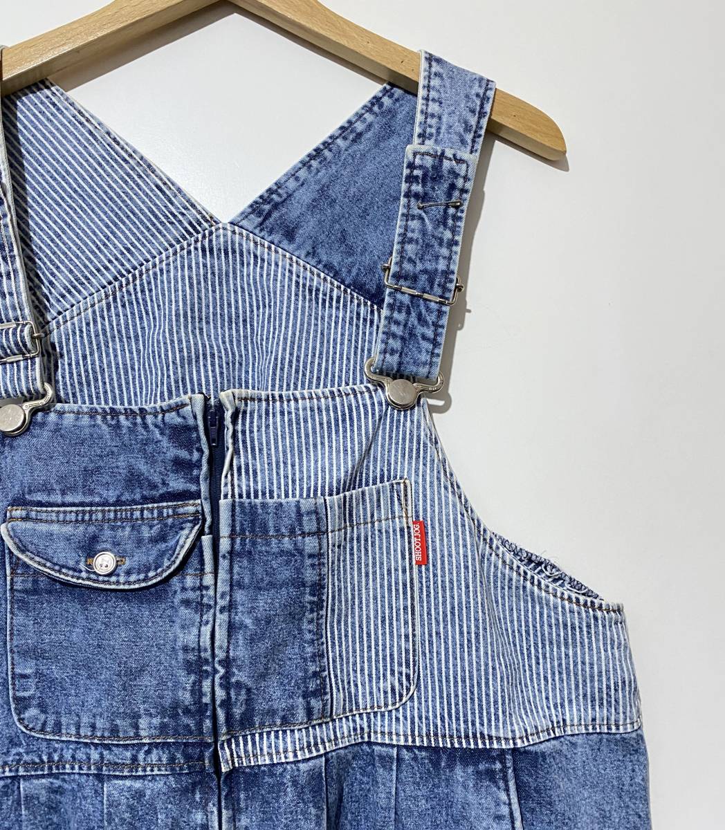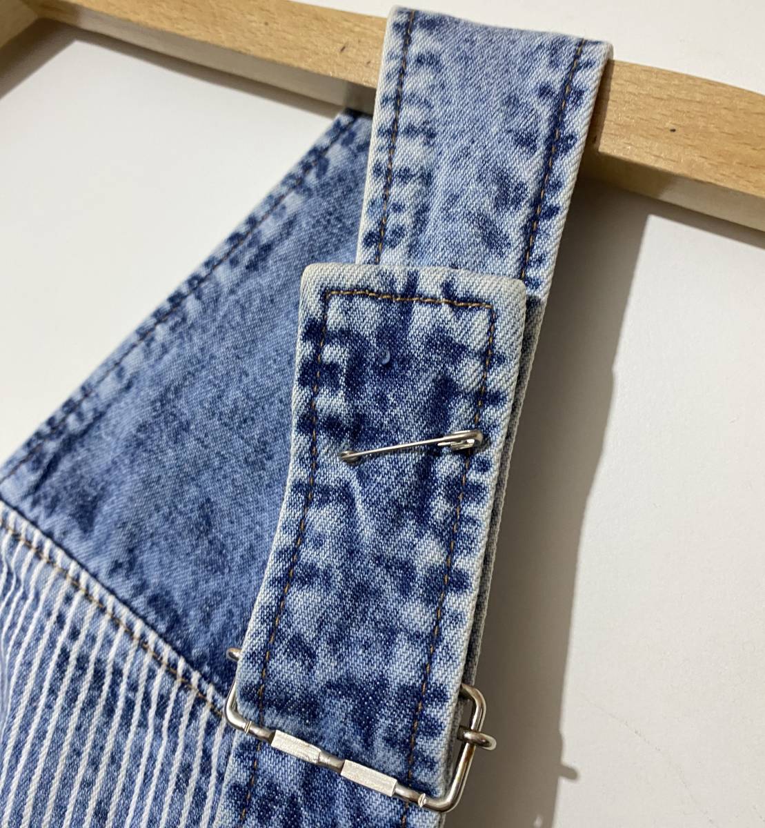 SHOOT.JOG. サロペット コットンデニム パンツ オーバーオール クロップド ヒッコリーストライプ切替 マタニティー M フロントジップ