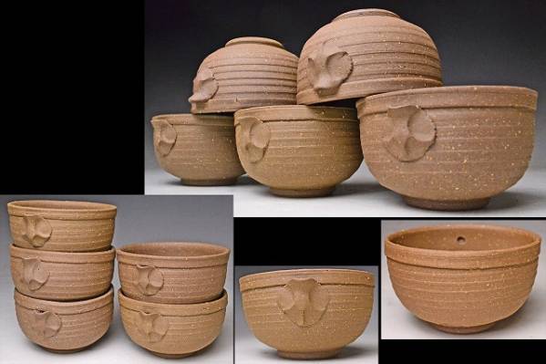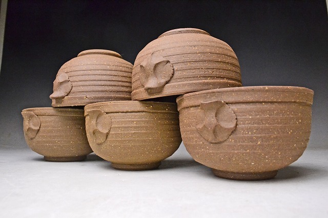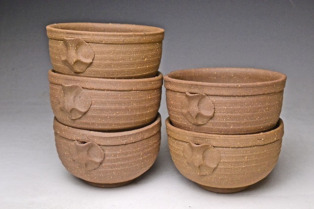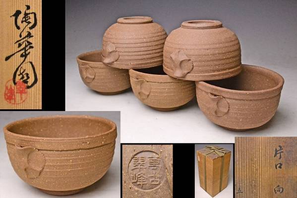 サイズは @110mmx104mmx高さ63mm です。 古萬古焼 の 写しの名工 、森翠峰 氏の 作品 です。 焼締南蛮の 無釉タイプの 片口向付 5客セットです。 写真を参考の上入札ください。宅配便80サイズにて発送します。他にも多数出品してます。同梱対応いたします。