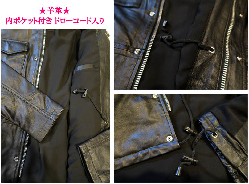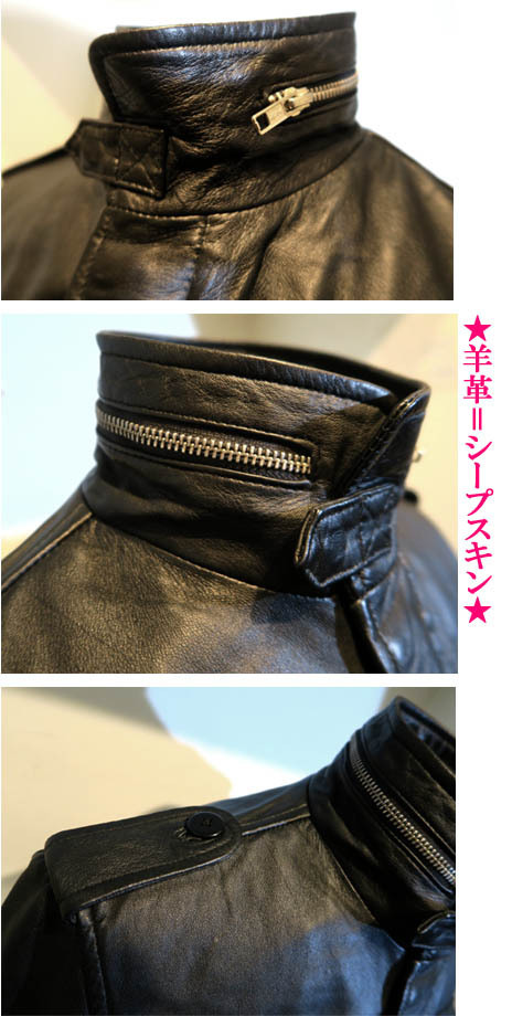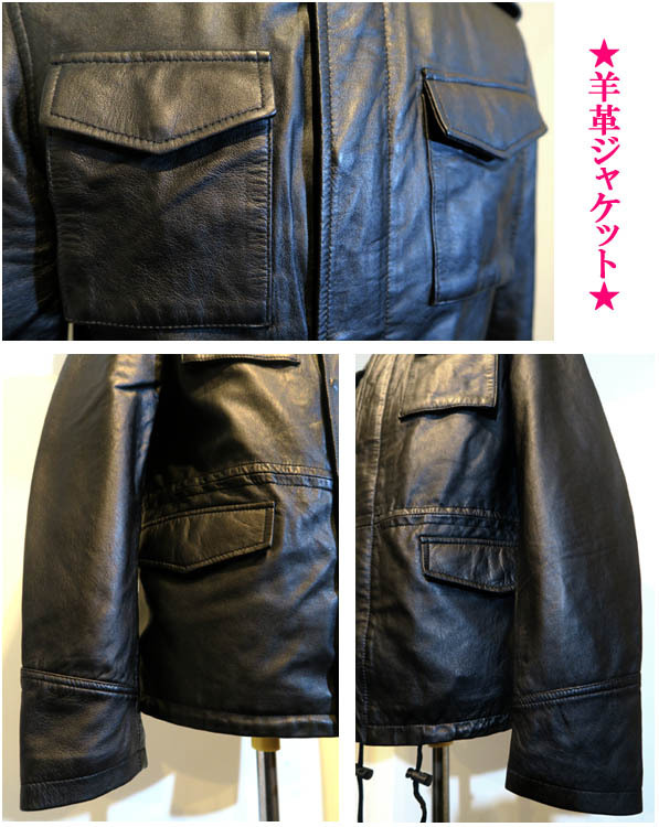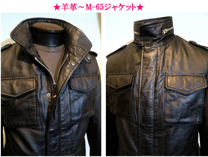 Mサイズ M65 レザージャケット 本革 羊革 シープレザー 3465 黒 ブラック BLACK メンズ ミリタリー 戦闘服 ライダース ロック モード