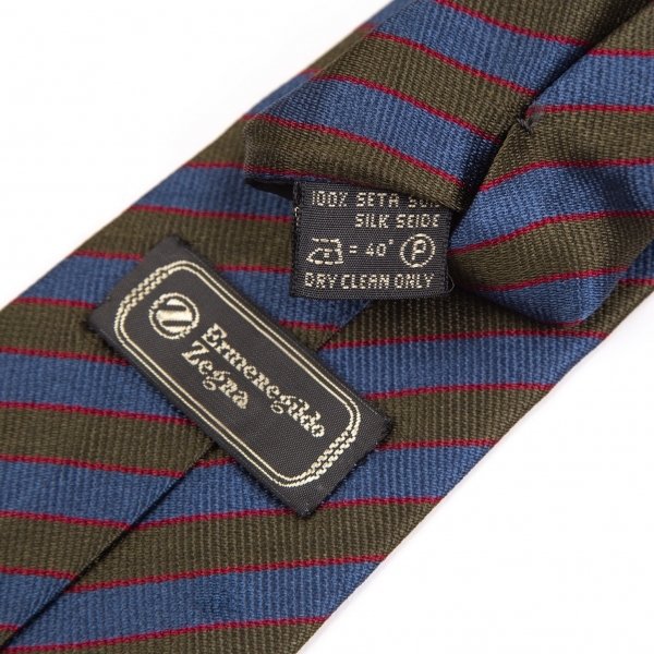 | エルメネジルドゼニアErmenegildo Zegna シルクレジメンタルタイ カーキ青 |
