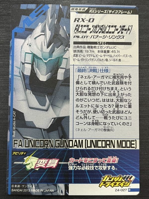 ◆即決◆ Z4-027 FAユニコーンガンダム パーフェクトレア ◆ ガンダムトライエイジ カード ◆ 状態ランク【A】◆