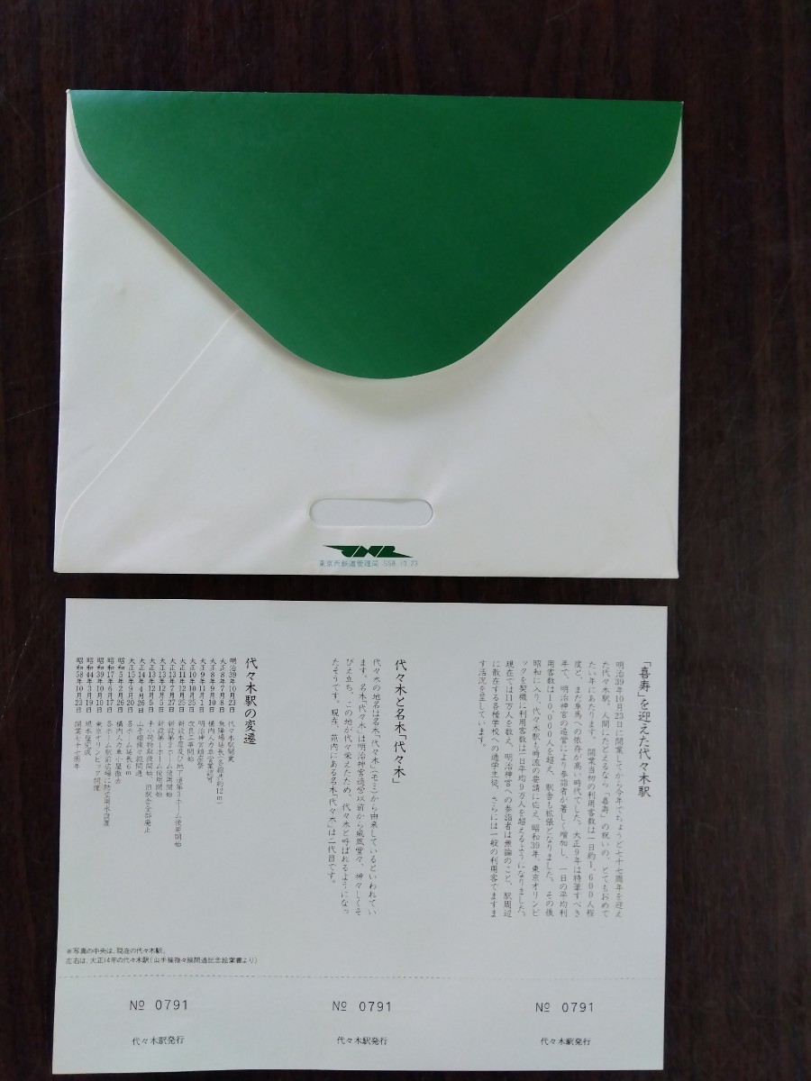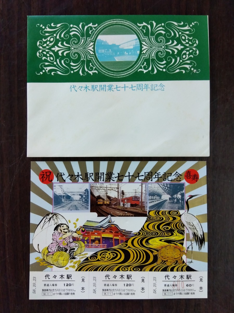 代々木駅開業七十七周年記念入場券(見本) 昭和58年発行