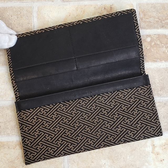 | 印伝 インデン 印傳屋 紗綾形 鹿革 薄マチ 長財布 ブラック スリム 和装 小銭室有 | |