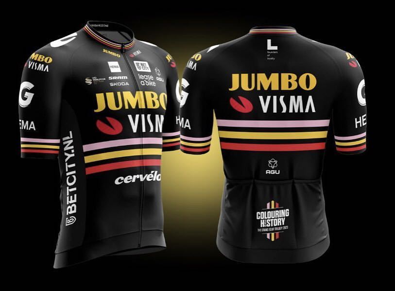 偉業を達成したブエルタの最終ステージでチームユンボ・ヴィスマのライダー達に着用されました。
