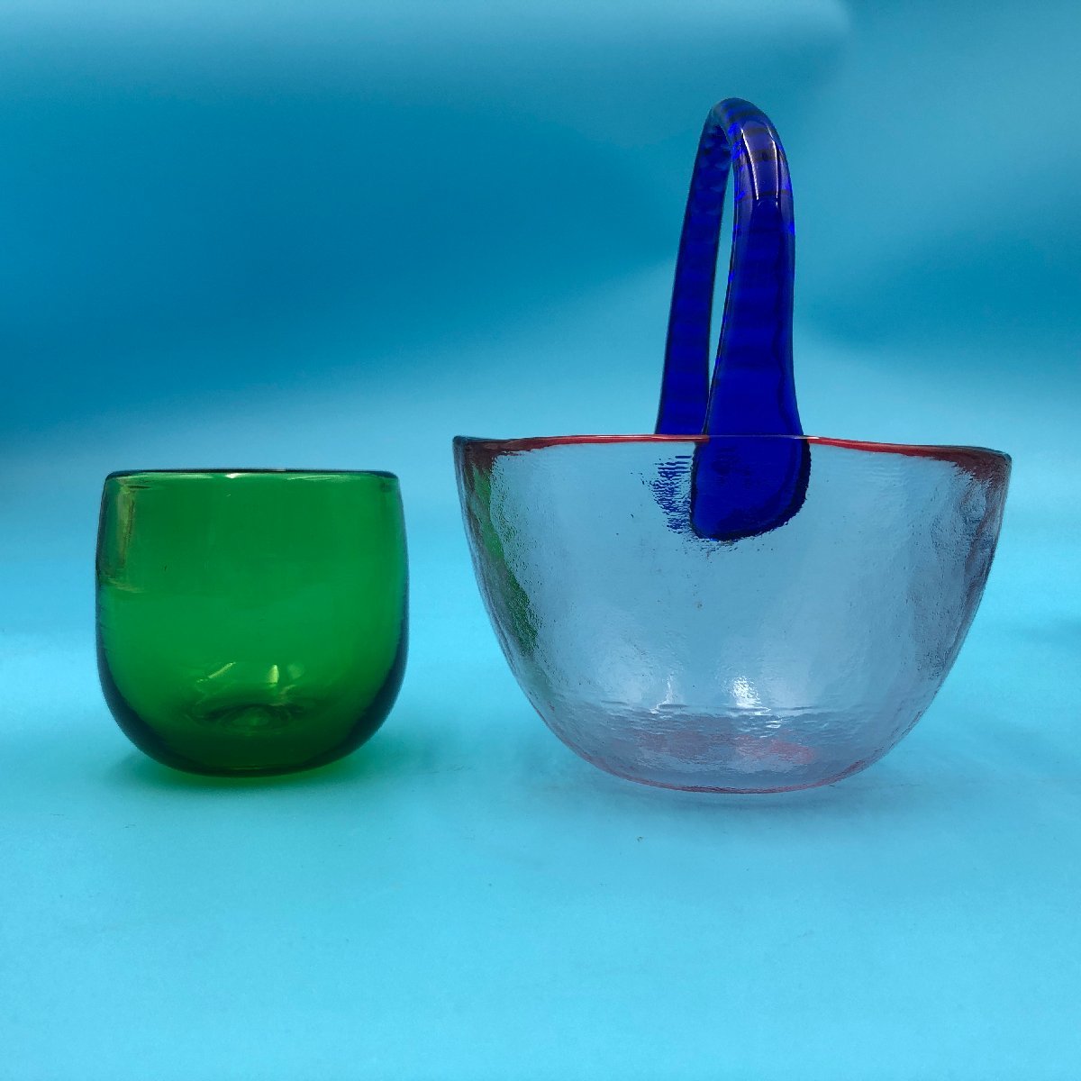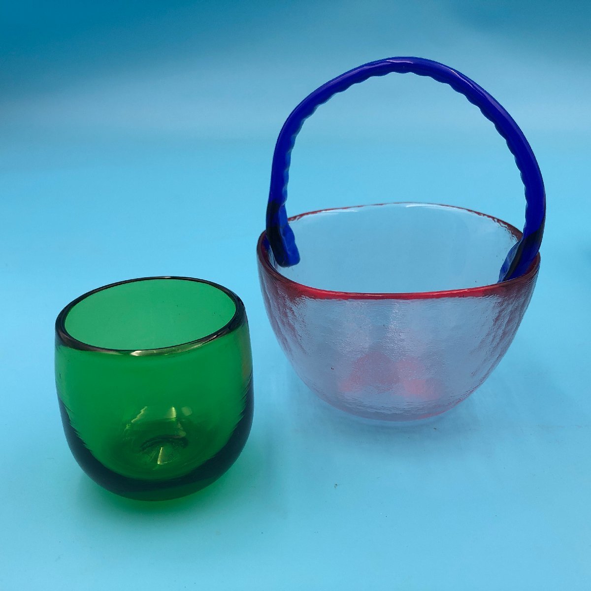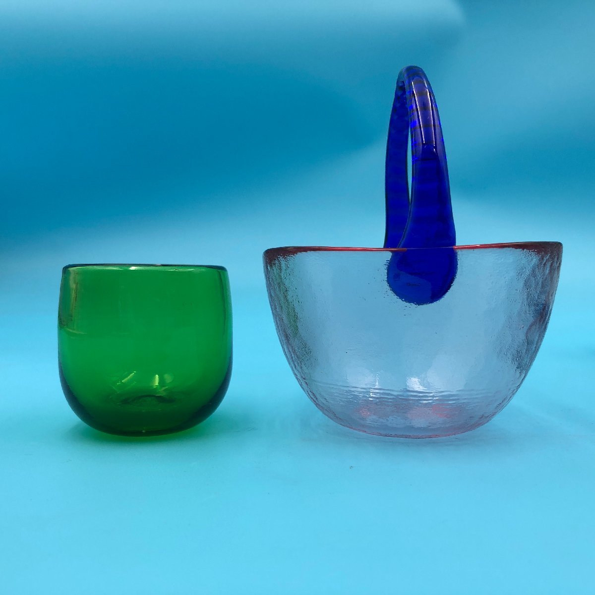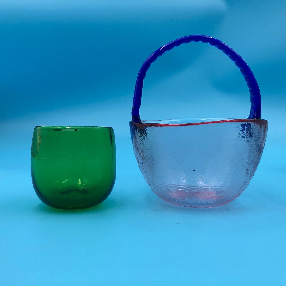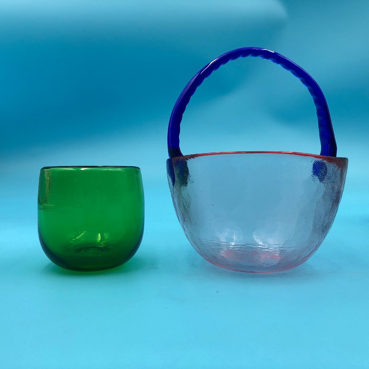 【A8641O168】レトロガラスの器 2個まとめて 手付きボウル アンティークガラス ぐいみ 花器 フラワーベース 花瓶 花入れ オブジェ