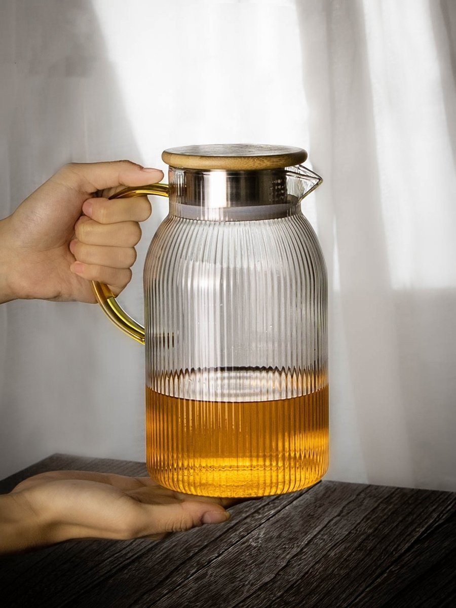 特売!実用品★ガラスティーポット 冷水筒 耐熱ガラス ピッチャー 水差し 1500ml