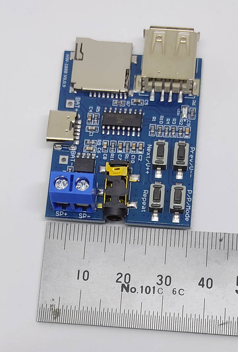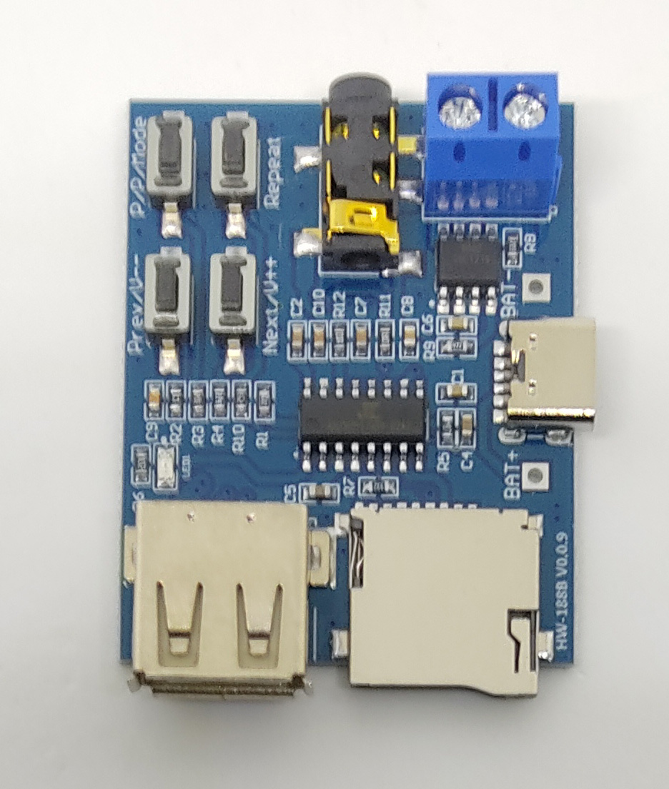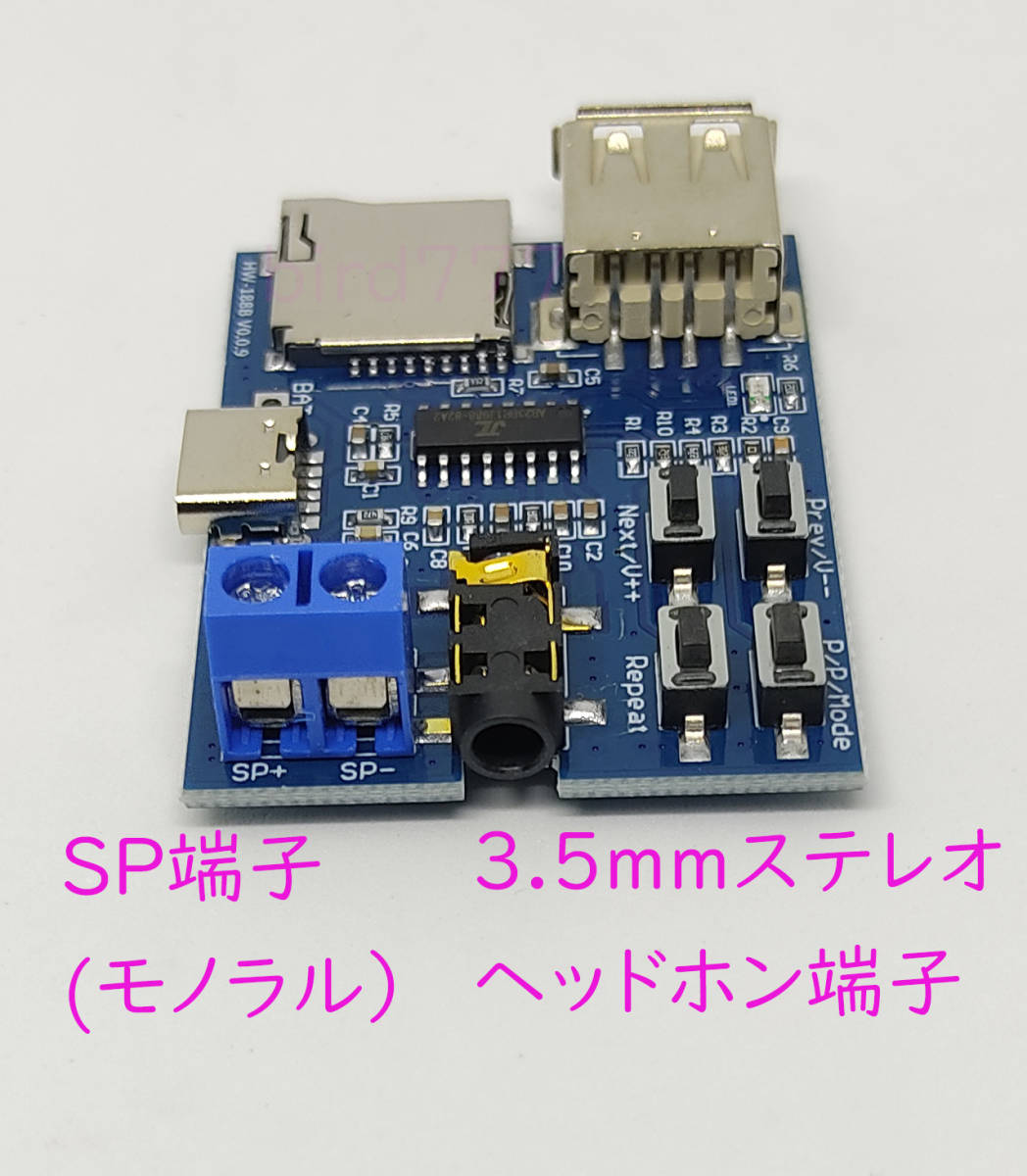 MP3再生モジュール 2Wモノラルアンプ付きで直接スピーカー接続OK 3.5mmステレオ端子付き 簡単操作 マイクロSDカード。USBメモリのMP3再生 検品動作確認後発送 電源がUSB Type-C仕様