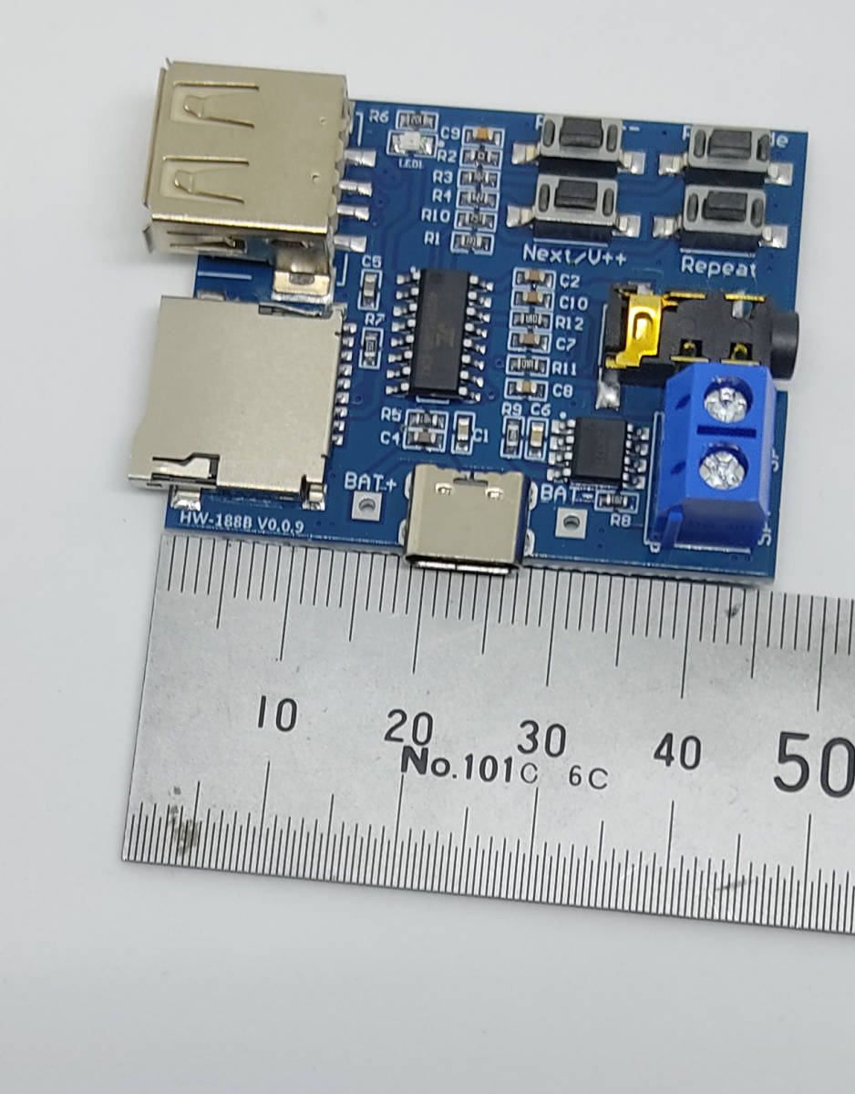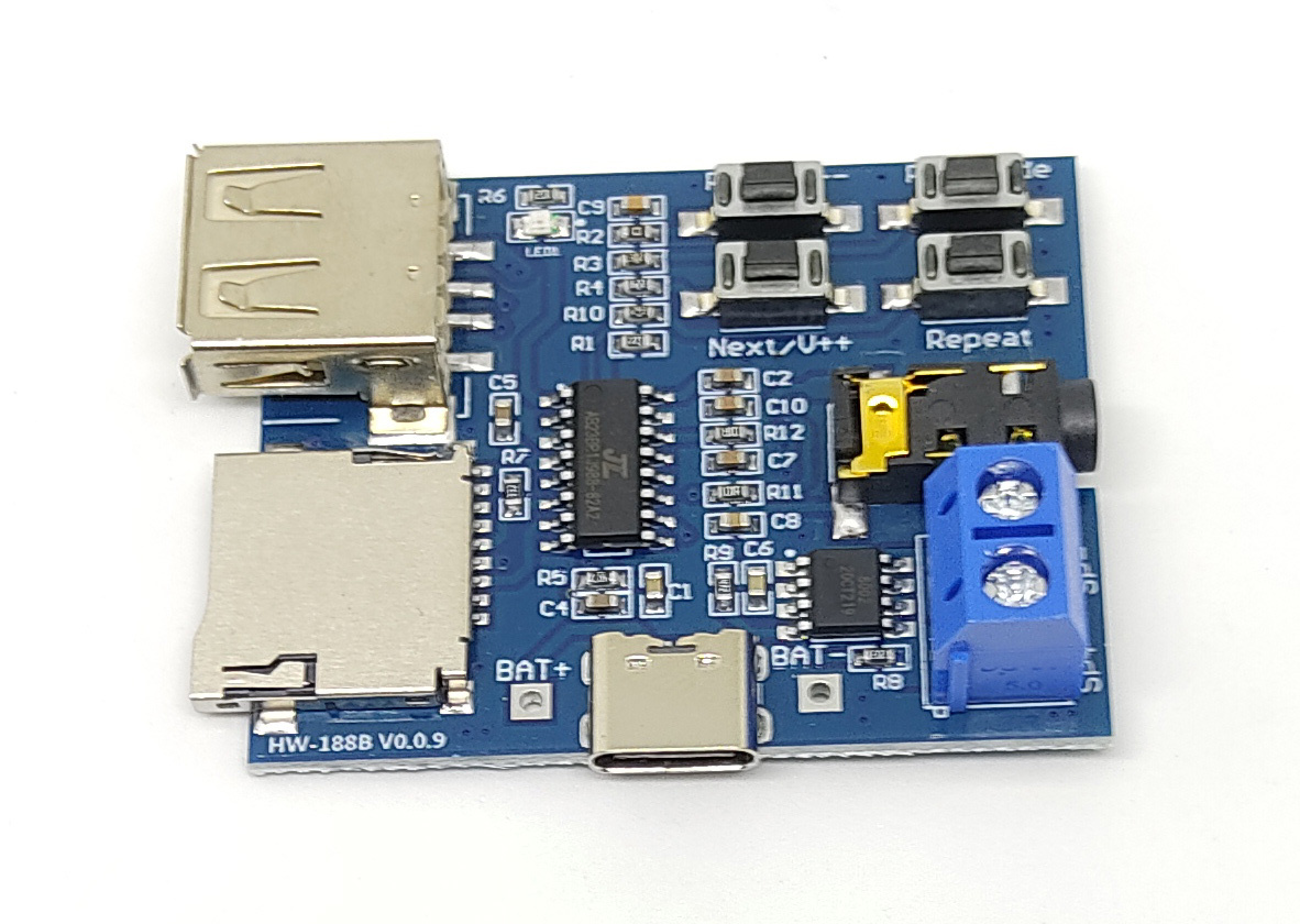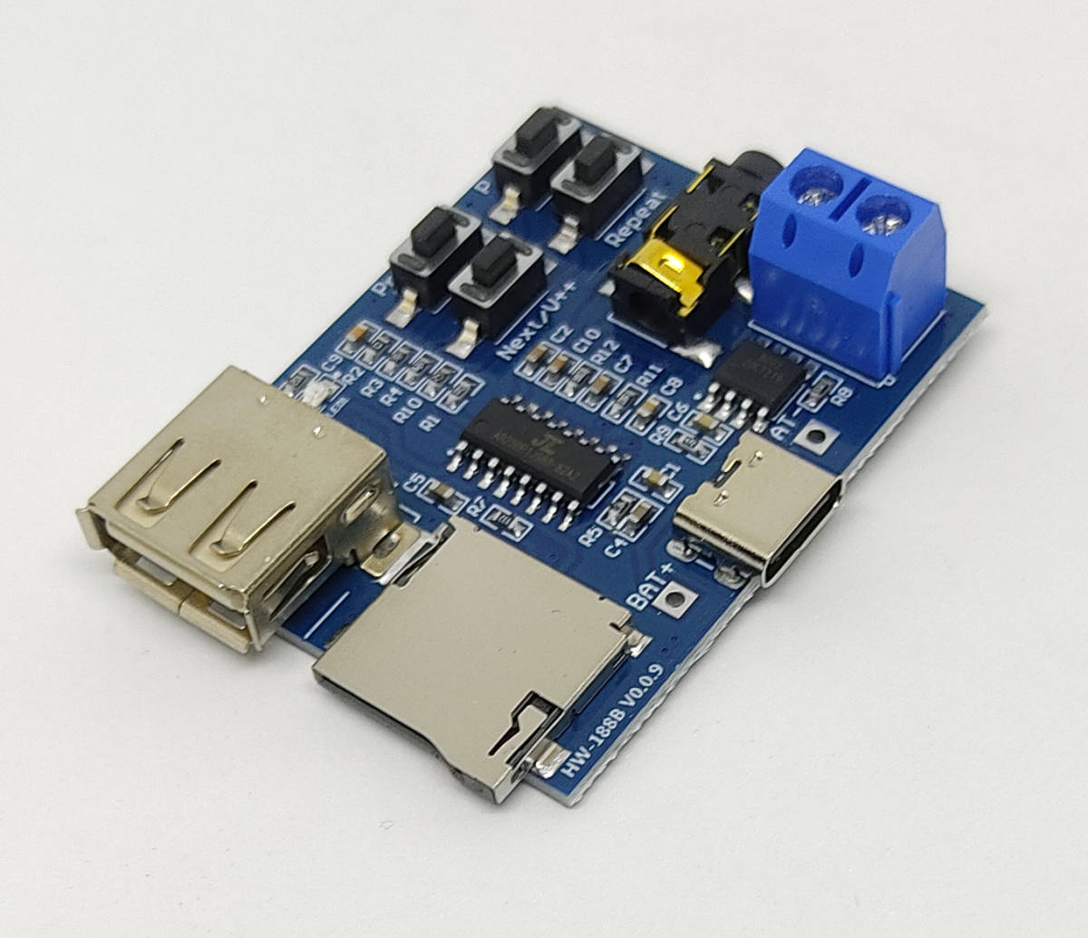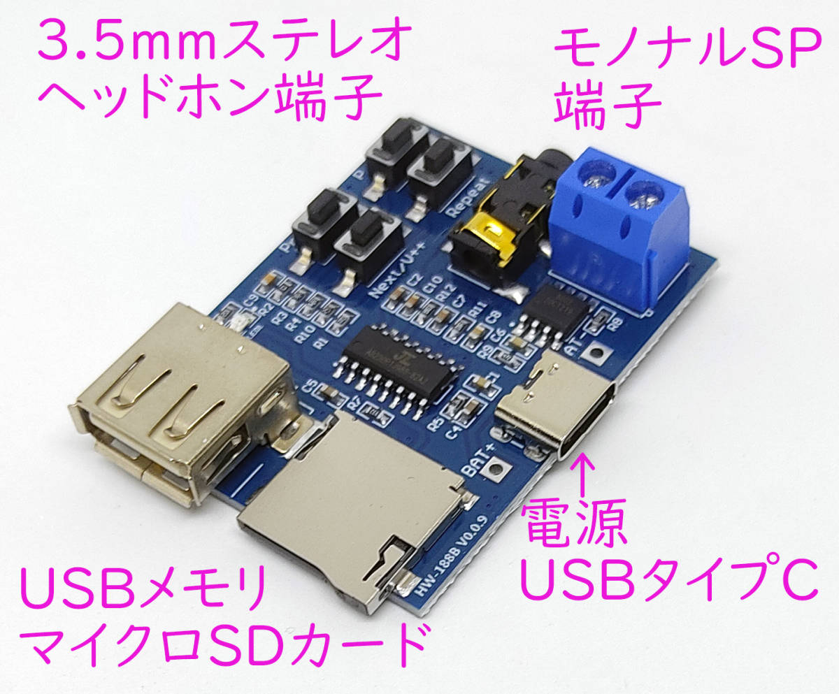 MP3再生モジュール 直接スピーカー接続OK 3.5mm端子付き 簡単操作 マイクロSDカード USBメモリのMP3再生 電源がUSB Type-C仕様