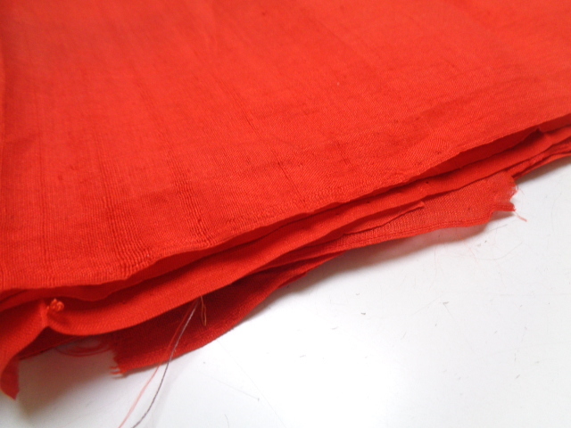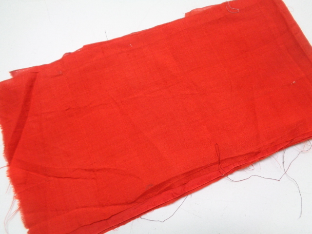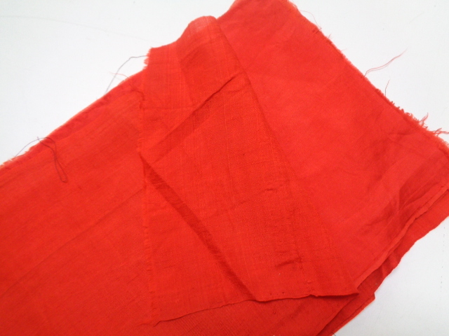 d514-60 アンティーク 着物裏地 ほどき 正絹 朱 生地 はぎれ リメイク 手芸 長期保管品