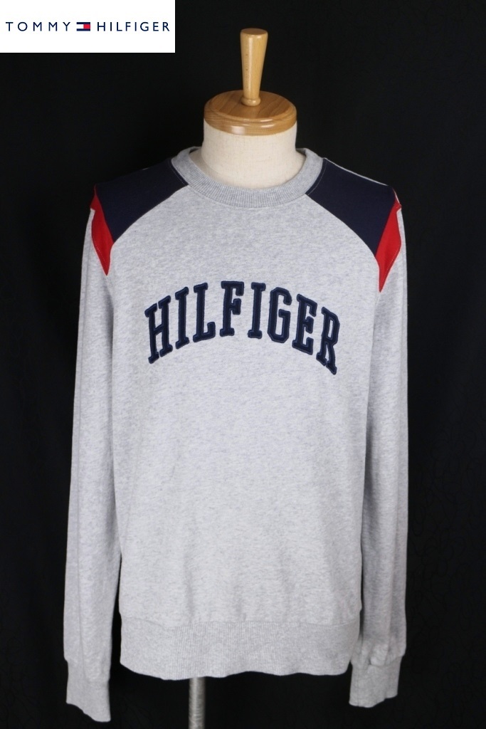 ■美品■TOMMY HILFIGER■薄手 ロゴ トレーナー S グレー トミーヒルフィガー 日本正規品