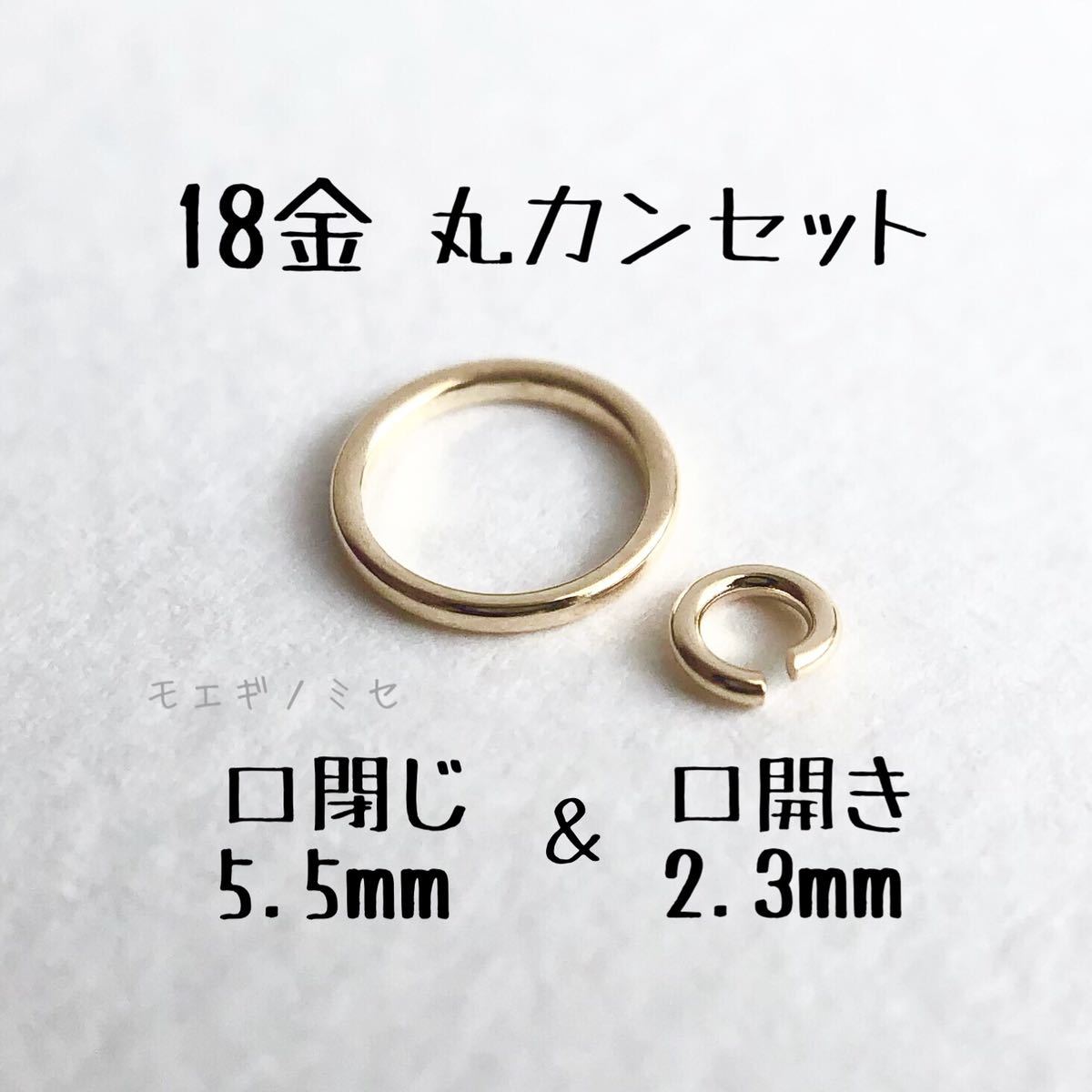 口閉じの5.5mmの輪っかと、 口開き丸カン(線径0.5mm外径2.3mm)のセットです。