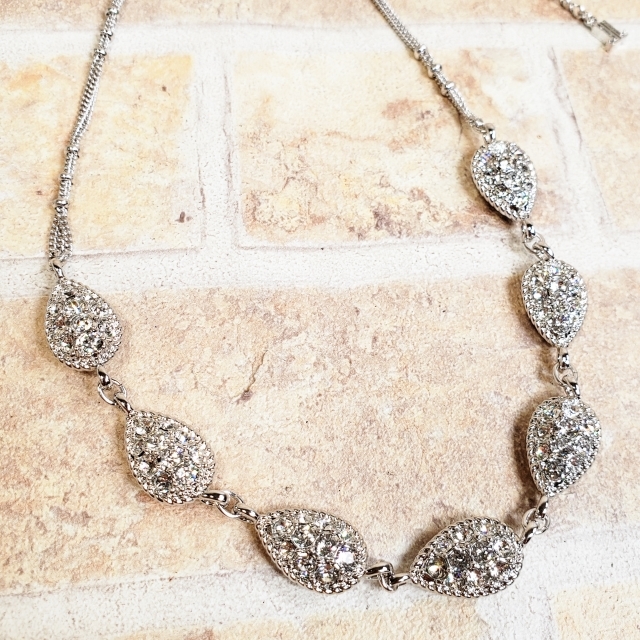 商品説明 | ・ビジュー付きのドロップ型モチーフやチェーン部分が2重になったデザインが華やかな チェンジャブル ネックレス です。 ドロップモチーフは、ビジューの反対側がロゴ刻印になっており、2way で使用していただけます。 ・カラー シルバー(画像参照) ・素材 メタル ビジュー ・付属品 ケアカード 箱 ・サイズ モチーフ含めた全長 約40.0cm(アジャスター部分 約10.0cm) パーツサイズ 縦幅 約1.0cm(中央部) 横幅 約1.5cm ・コンディション 使用感の少ない良いコンディションです。(画像参照) ※個人保管商品ですので、店舗コンディションをお求めの方はご入札をお控えください。ご理解の上ご入札お願いいたします。 |
