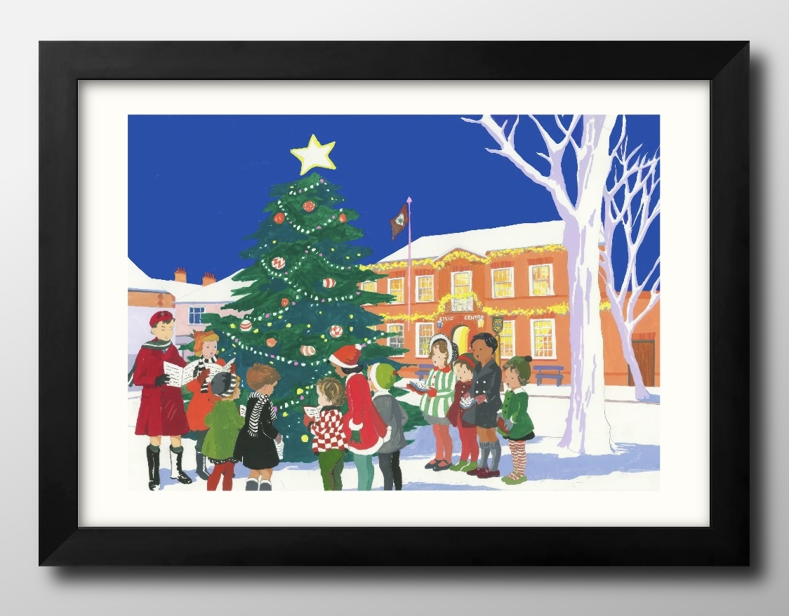 14219■送料無料!!アートポスター 絵画 A3サイズ『イギリス クリスマスの街並み』イラスト 北欧 マット紙
