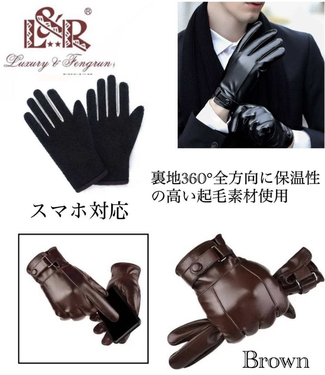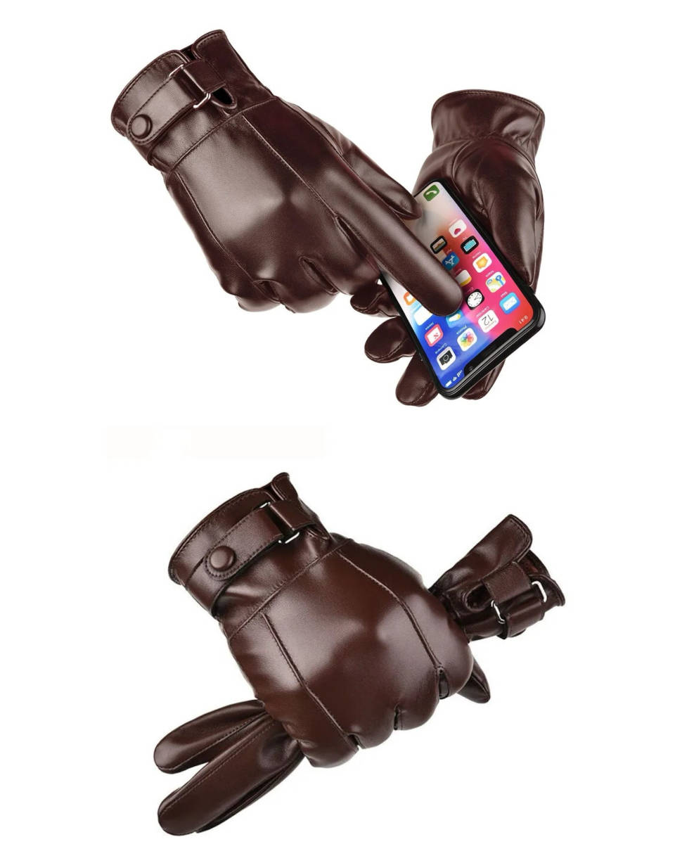 手袋 革手袋 スマホ手袋 レザー 裏起毛 革 メンズ手袋 バイク 撥水加工 グローブ  防寒 液晶タッチ パネル対応 ブラウン