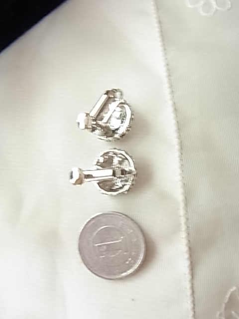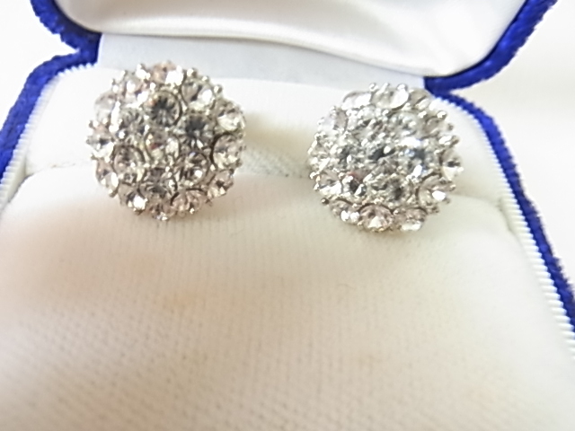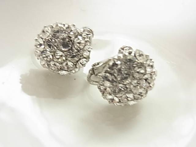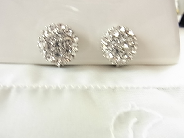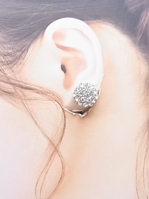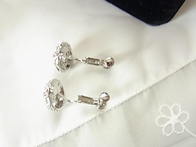 輝くキュービックジルコニア ややラウンド形 銀色 シルバーカラー 上品で素敵 耳元華やぐ 約1.5センチ イヤリング▲