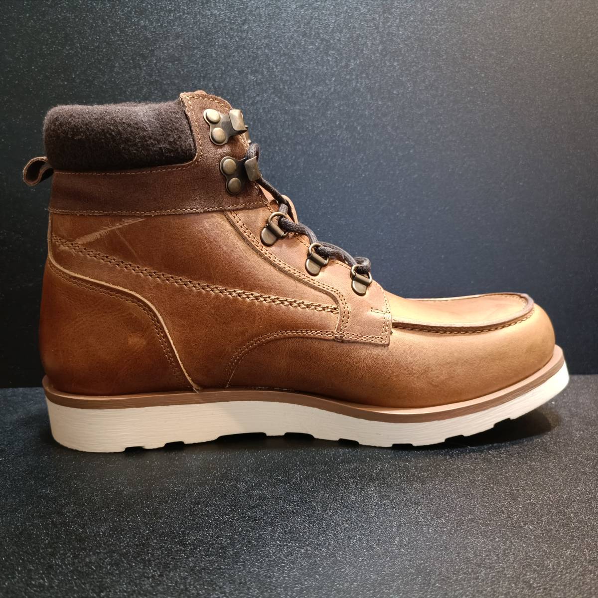 茶色のレザーを用いた5フック式ブーツです。