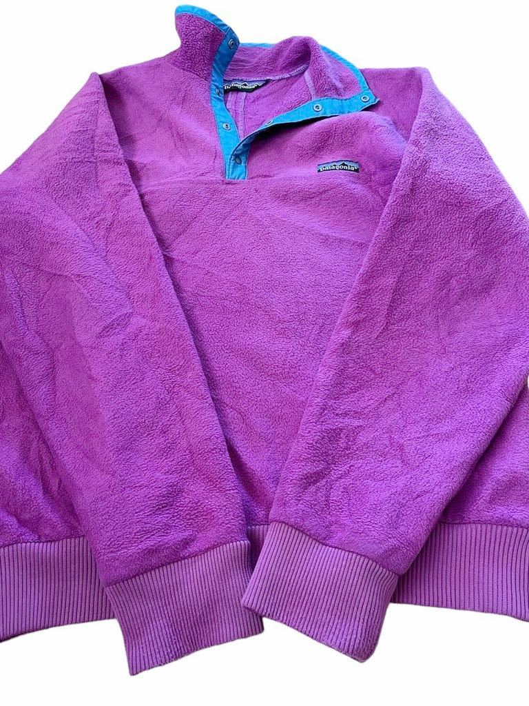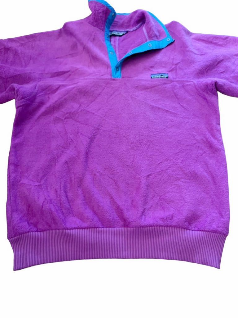 used、品番?、サイズS、素材はポリエステル、お色は紫x水色系。